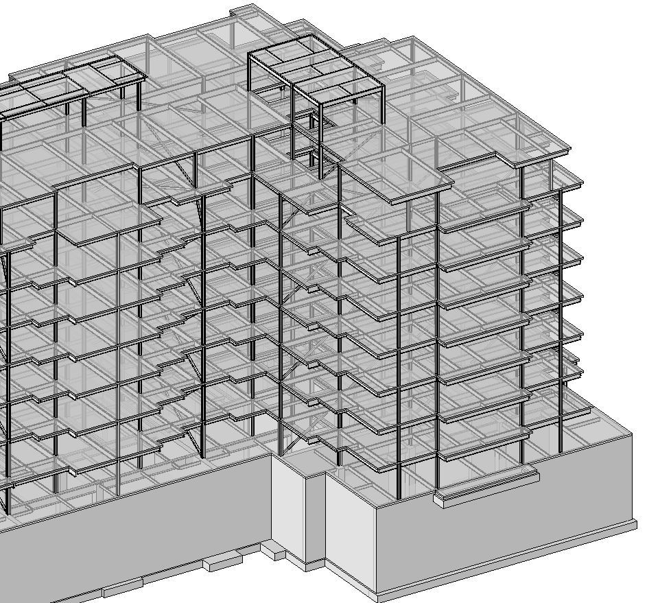 - Performing structural system studies to maximize bay spacing, minimize structural system tonnage, and limit the requirement for load transfers between the steel building and cast-in-place concrete garage below