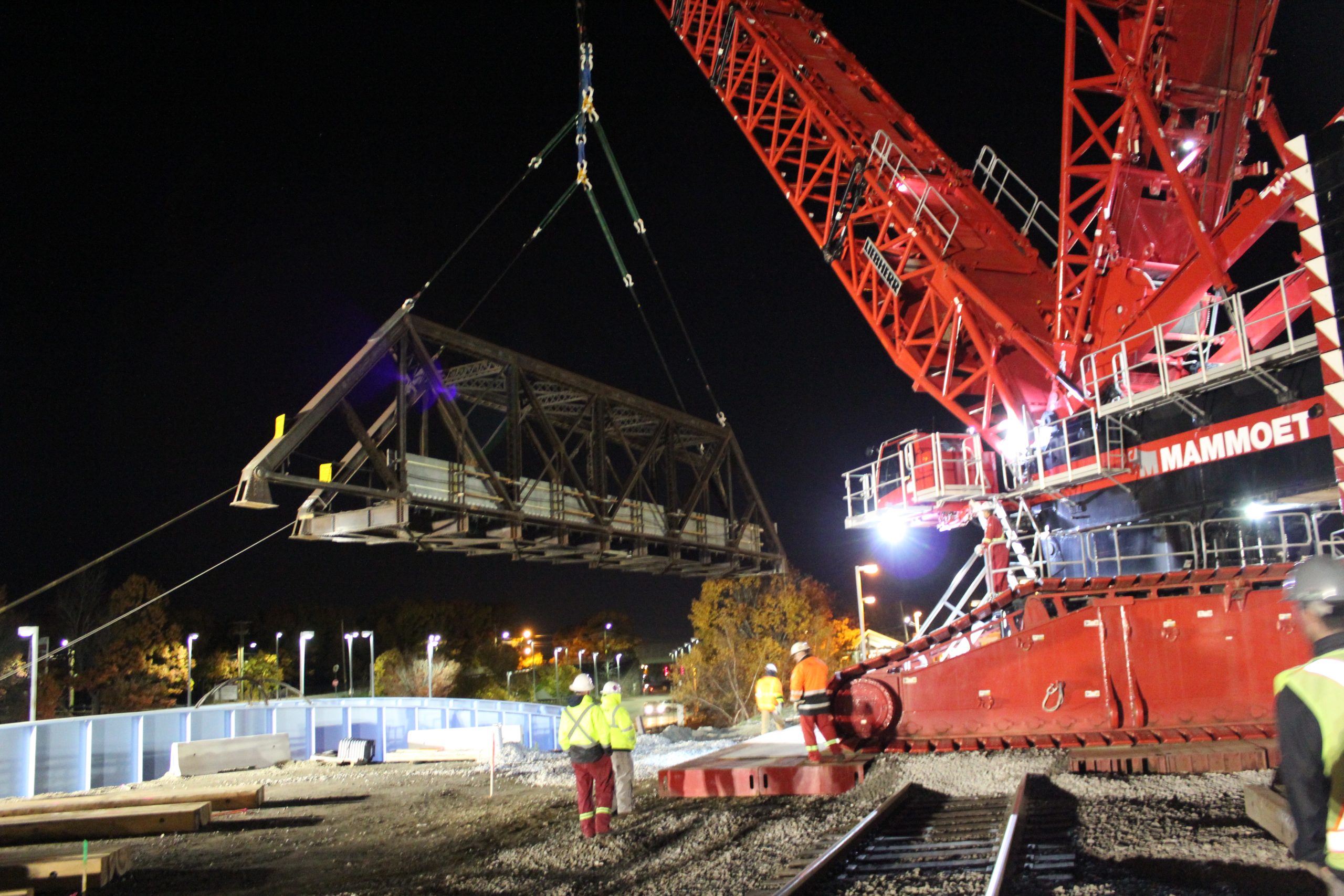 MBTA required Barletta to remove the existing bridge during one five-hour overnight shift. To accomplish this, Barletta would have to remove the bridge in a single heavy lift. SGH evaluated the feasibility of this approach and helped Barletta develop a plan to implement this lift. Highlights of our work include the following: