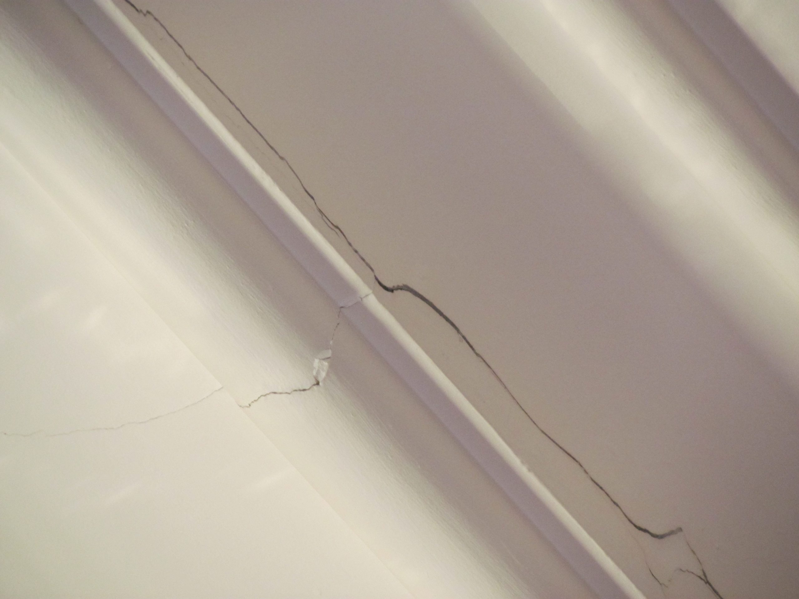 • Localized repairs for cracks with vertical displacements/offsets that included mechanically fastening the plaster on both sides of the crack through to the supporting wood structure