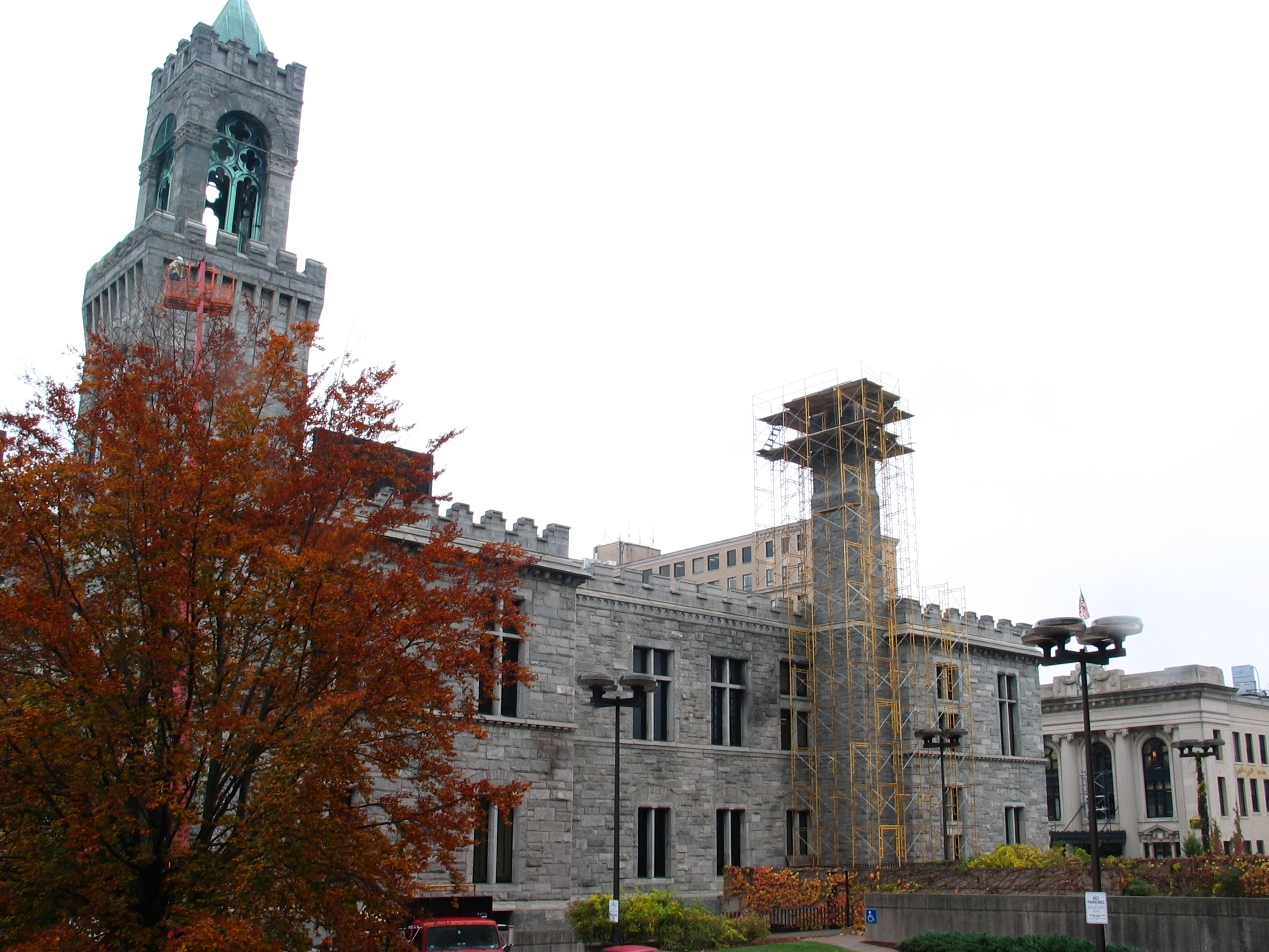 - Rebuilding deteriorated portions of the tower and chimney by numbering and reusing original stones in their original locations