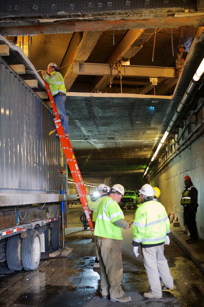 Suspended Concrete Ceiling Removal over Massachusetts Turnpike