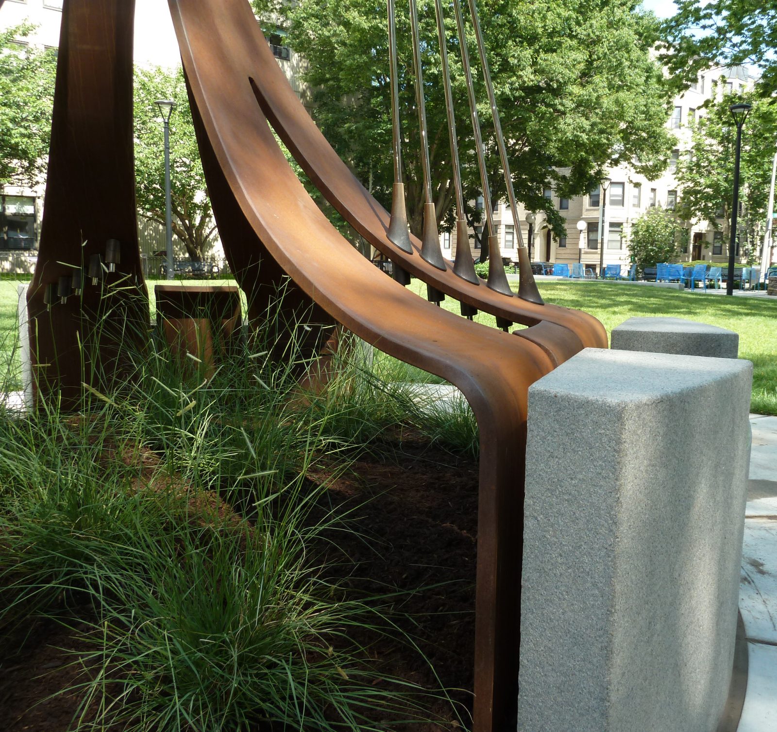As part of Symphony Park’s redesign, the Boston Parks and Recreation Department collaborated with the Boston Art Commission and the Friends of Symphony Park to select Jacob Kulin to design a sculpture for the park. Celebrating the nearby Berklee College of Music and Symphony Hall, Kulin’s design embraces the shapes of string instruments in his modern Scandinavian style. SGH consulted on the structural design for the 16 ft tall sculpture, First Chair.