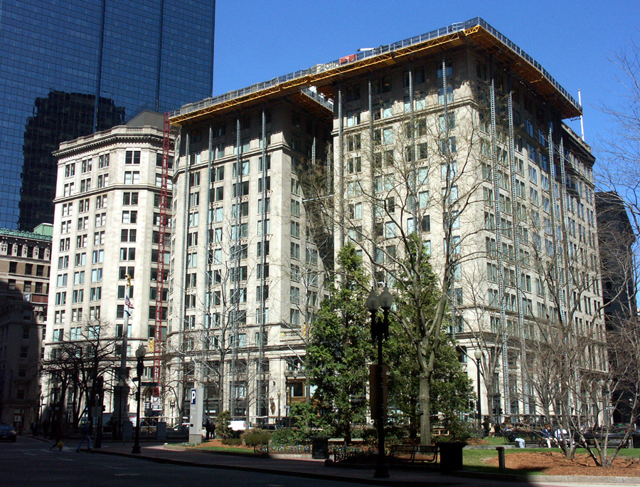 Ten Post Office Square is a thirteen-story, steel-framed structure with a transitional masonry facade. The building, constructed in phases during the 1920s and 1930s, occupies most of a city block. The facade featured a limestone cornice that projected several feet beyond the face and was partially supported by concealed structural steel in the parapet and in stone brackets (modillions) and dentils below the ledge. When a limestone modillion fell onto the public sidewalk, the City of Boston required sidewalk staging protection around the entire building. The building’s owner hired SGH to conduct an emergency facade survey and design repairs.