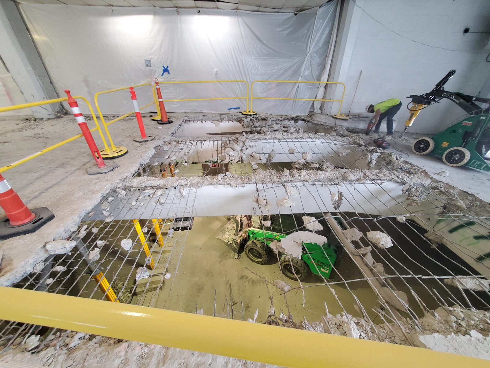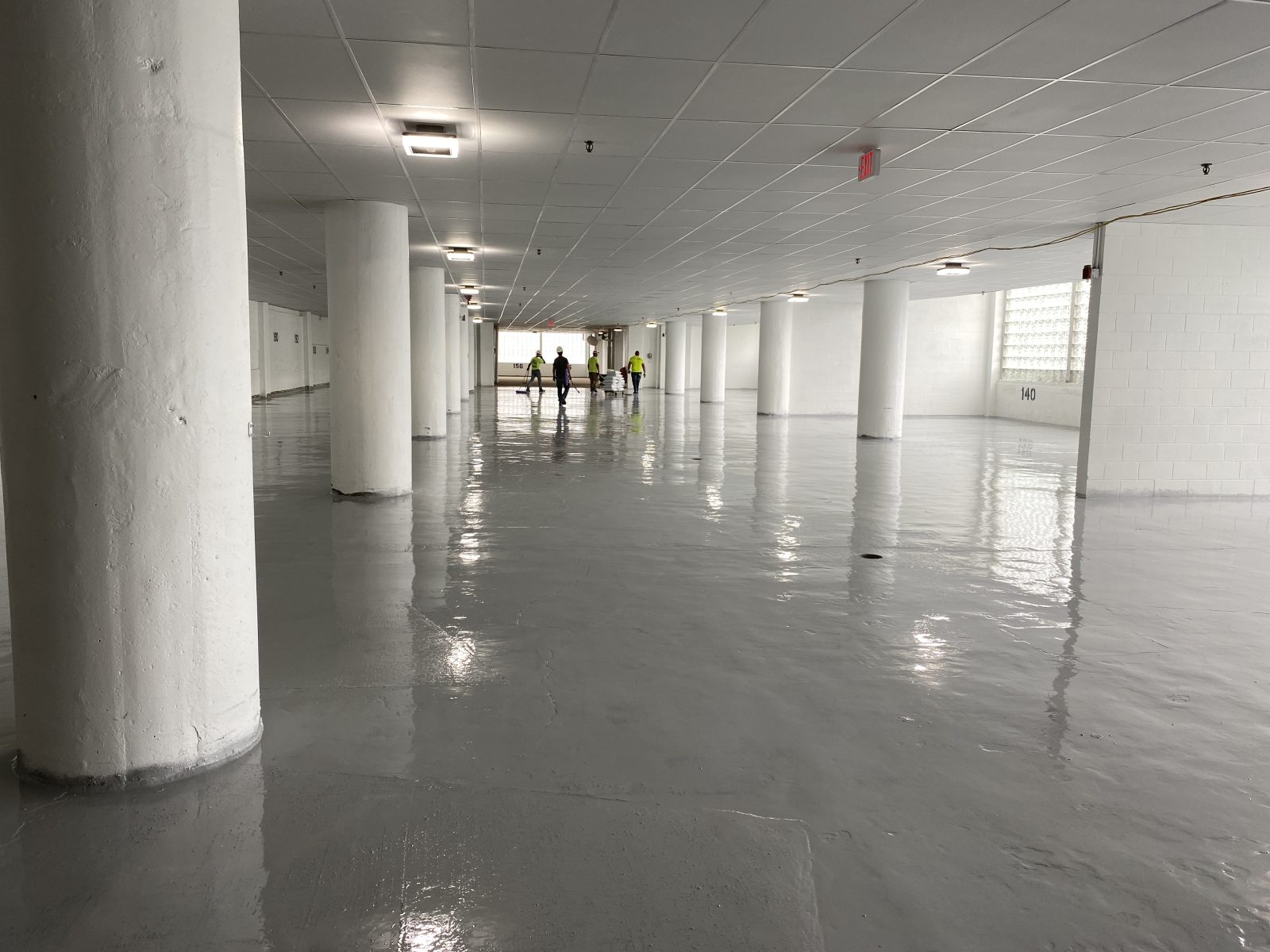 • Repairing cracks and deteriorated concrete components in the below-grade concrete parking structure and applying a traffic-bearing waterproofing coating