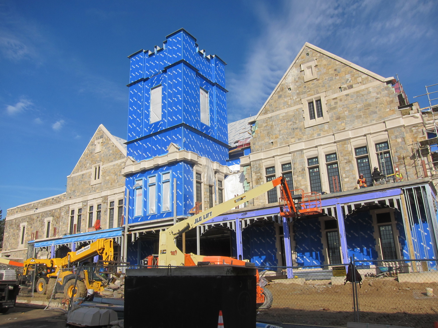 • Consulting on the ashlar stone-clad exterior walls designed as a rainscreen with modern waterproofing and flashing details, while appearing as transitional mass masonry walls
