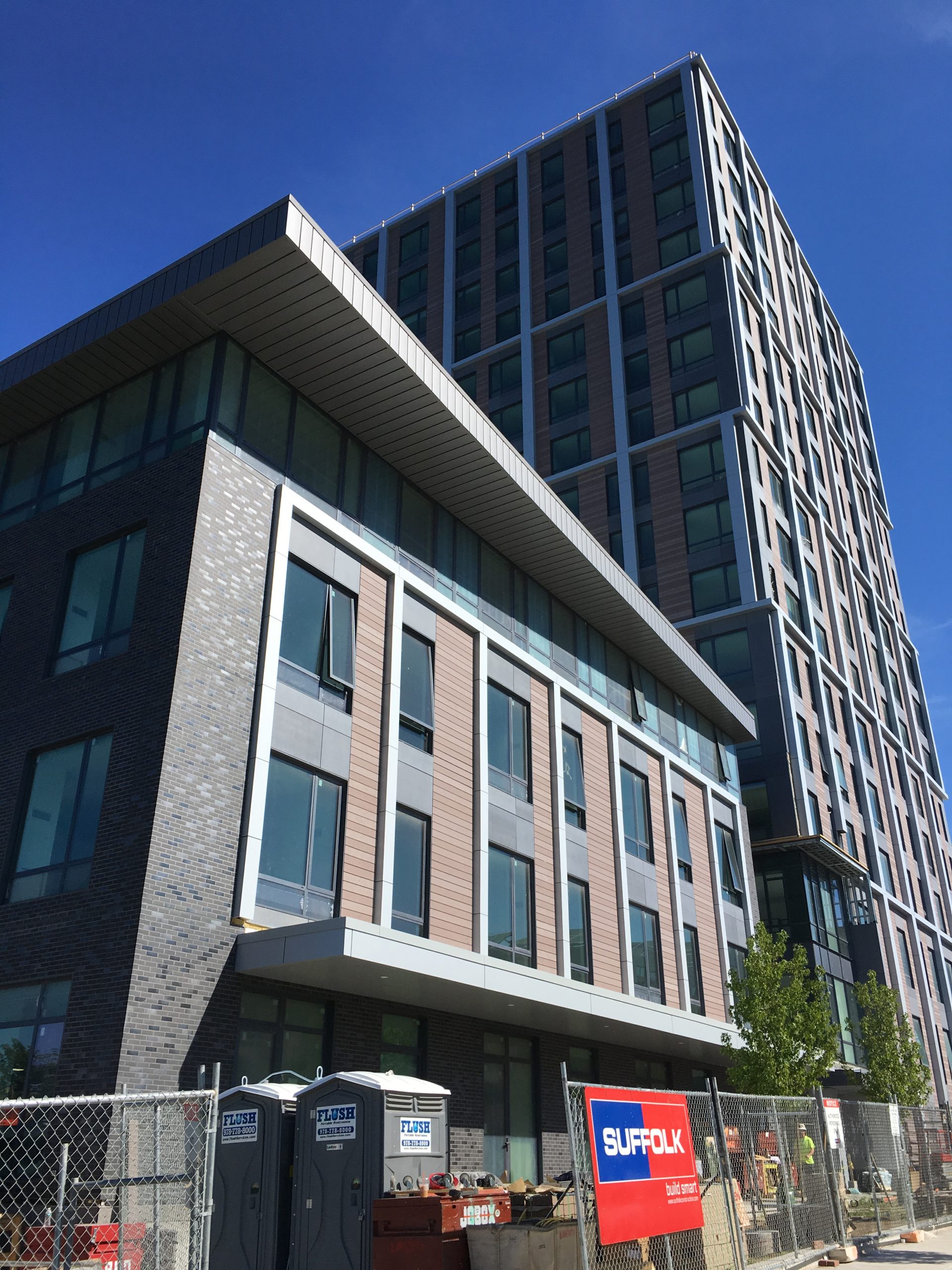 The Eddy, a new residential development, sits along the waterfront in East Boston. The property includes 258 rental units in a seventeen-story tower and four-story building. In addition to views of the downtown skyline, residents enjoy many amenities, including a rooftop terrace and second-floor pool deck. SGH consulted on the design of the building enclosure, featuring prefabricated wall panels.