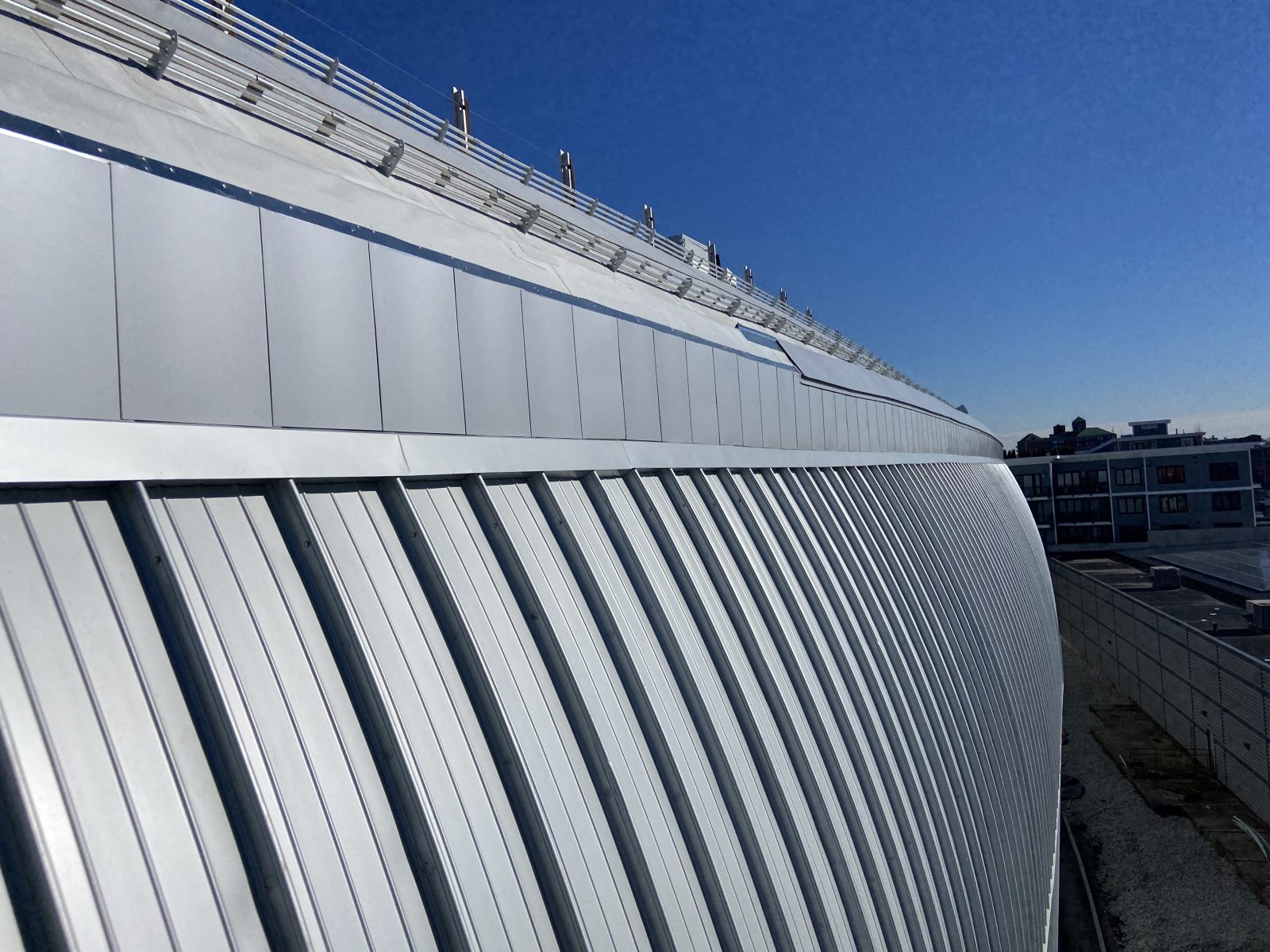 The TRACK at new balance, part of the Boston Landing development in Brighton, is a multi-sport venue with a 200 m hydraulically banked indoor track and a ground-level concert venue. SGH consulted on the roofing and waterproofing design for the project.
