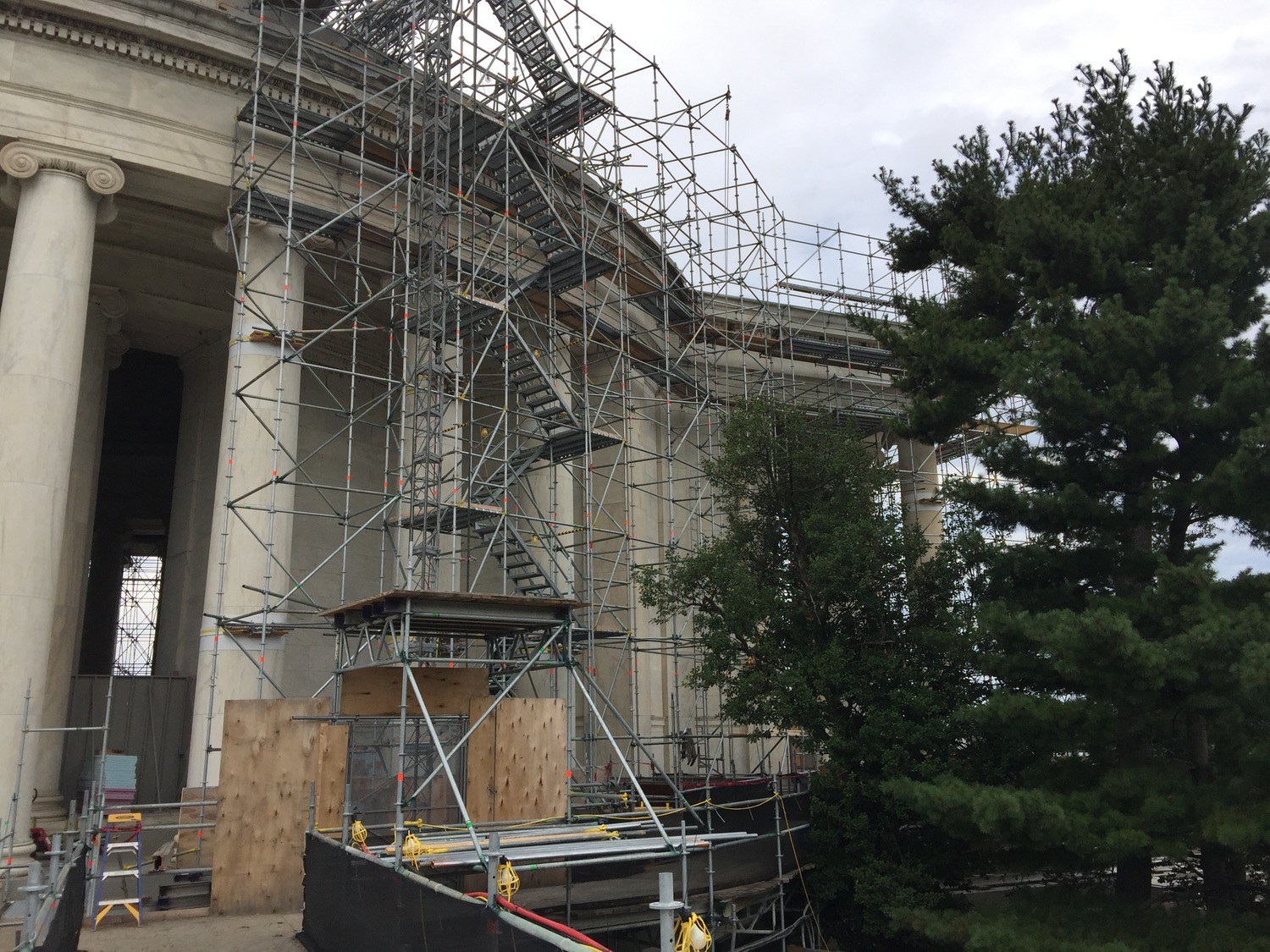 - Developing permanent repairs for cracked stone components, including column capitals, marble panels at the architrave, and a limestone soffit panel