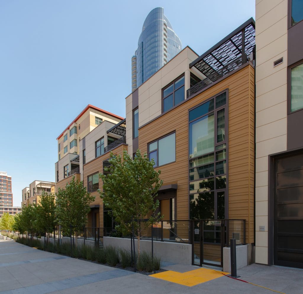 The development at Transbay Block 6 brings two new properties to the neighborhood. The Solaire at 299 Fremont Street includes a thirty-two-story residential tower, six-story podium building, seven three-story townhouses, and below-grade parking. The neighboring midrise at 280 Beale Street offers seventy affordable housing units. SGH consulted on the building enclosure for both properties.