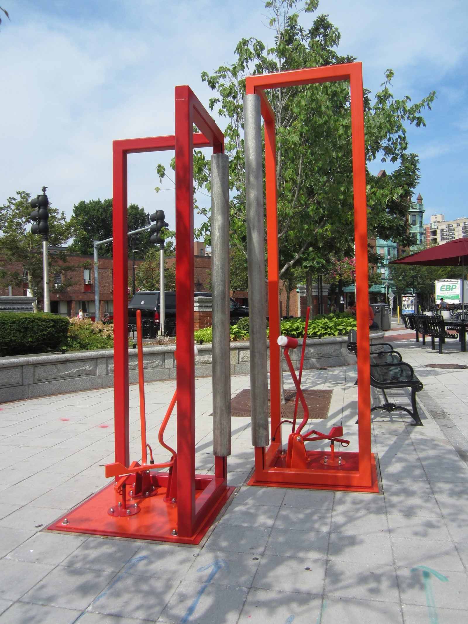 Let the Public Play, a project administered by the Cambridge Arts Council, brings playful environments to the city’s parks and playgrounds. As part of this project, Adam Simha, a Cambridge-based artist and metalsmith, designed Tubular Bells to give visitors an opportunity to play music in Lafayette Square. SGH consulted on the structural design for the bells’ support structures.