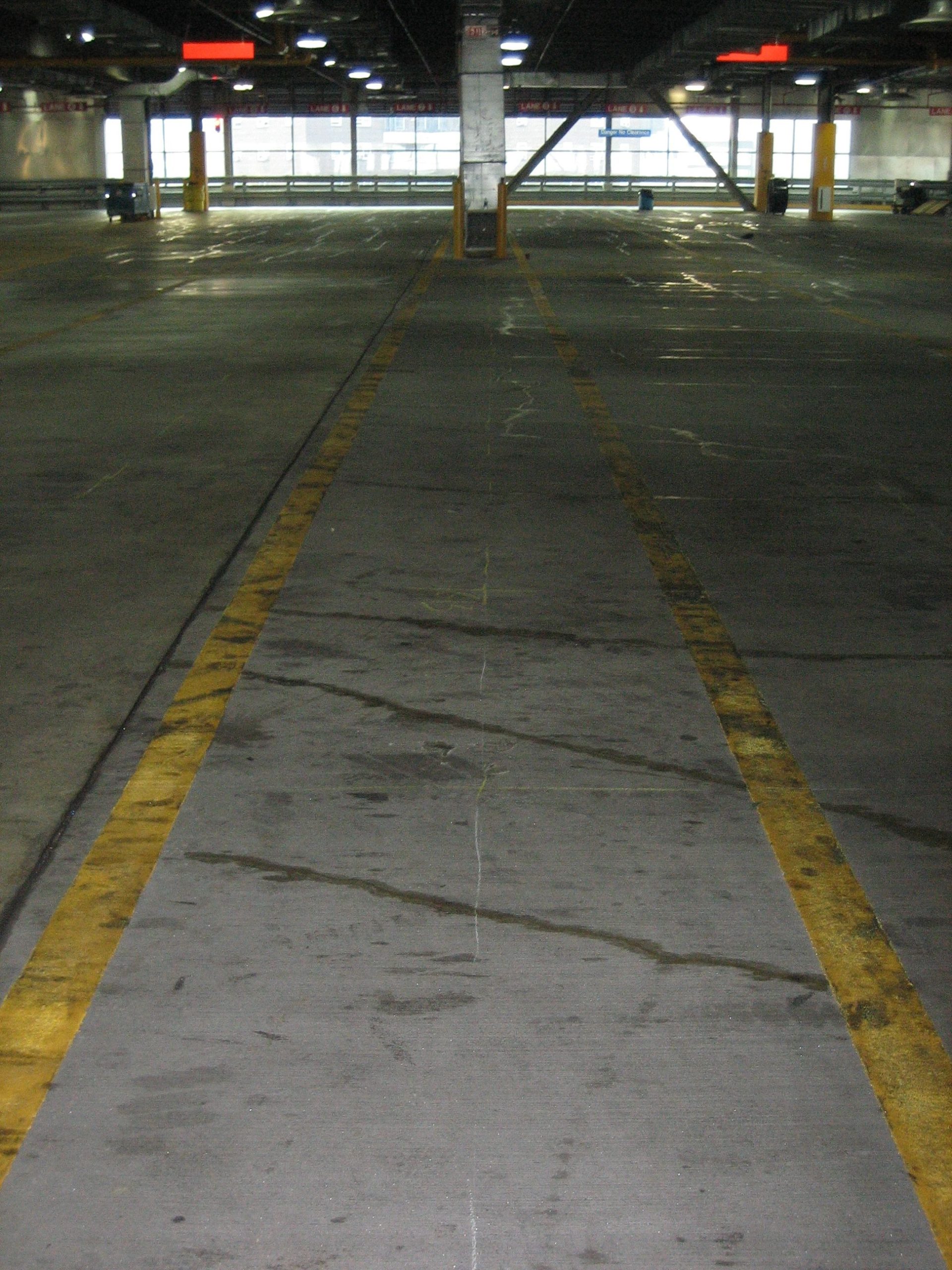 In 2006, SGH completed a field investigation to document all cracks. We used ground penetrating radar (GPR) to collect information related to the depth of the reinforcing steel and slab thickness. In our laboratory, we evaluated extracted concrete core samples. SGH concluded widespread cracking resulted from several construction issues and attempts to fill the cracks did not penetrate sufficiently.