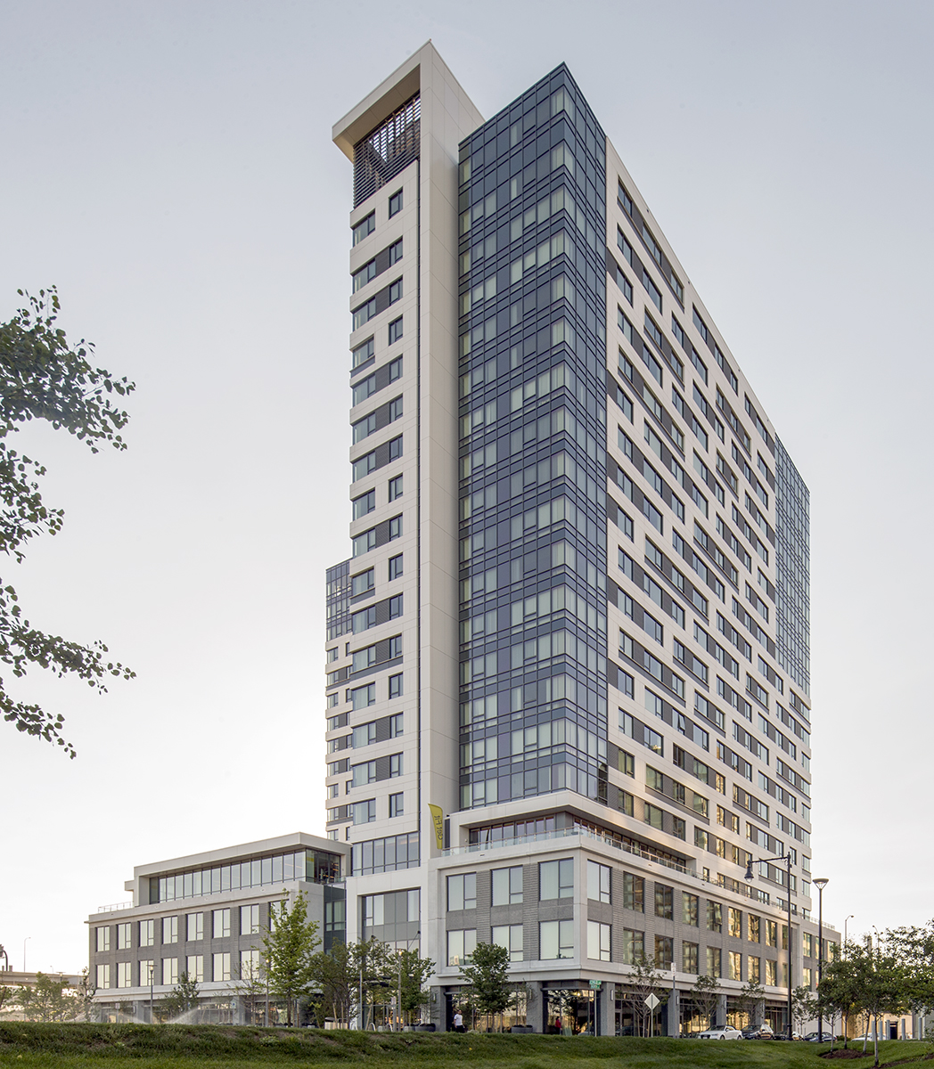 Leading the development at East Cambridge’s NorthPoint site, Twenty|20 brings 355 apartment units to the growing neighborhood. The building also offers 8,600 sq ft of retail space and numerous amenities, including patios, an event room, a fitness center with a yoga terrace, an indoor basketball half-court, a courtyard lounge, landscape plaza areas, and underground parking. The nearly full-story glazing maximizes the great city views. SGH consulted on the building enclosure design.