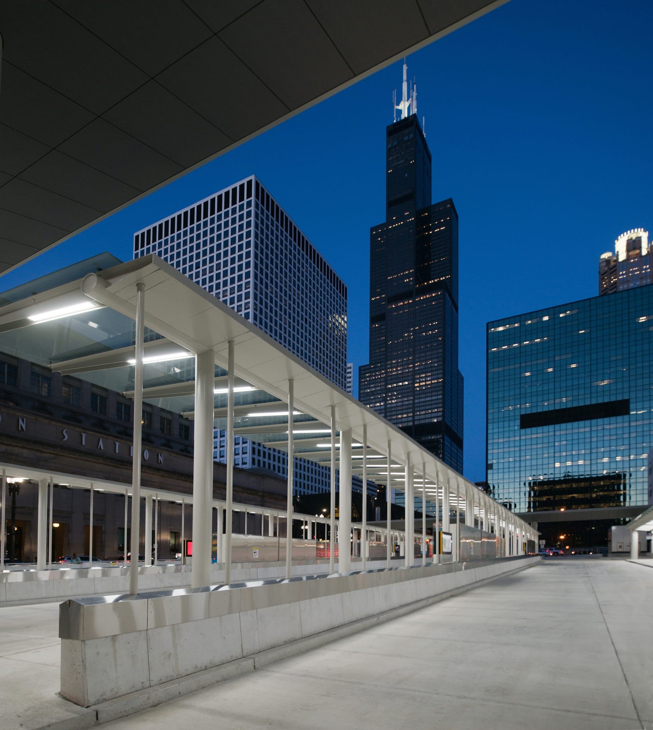 Led by the Chicago Department of Transportation, the Union Station Transit Center project creates an off-street Chicago Transit Authority (CTA) bus terminal adjacent to Chicago’s bustling Union Station. The transit center allows commuter rail and Amtrak train passengers to directly connect to CTA buses through an underground walkway. Working as a subconsultant to the bus canopy and curtain wall subcontractor, SGH served as the structural engineer of record to design and detail the canopy superstructures.