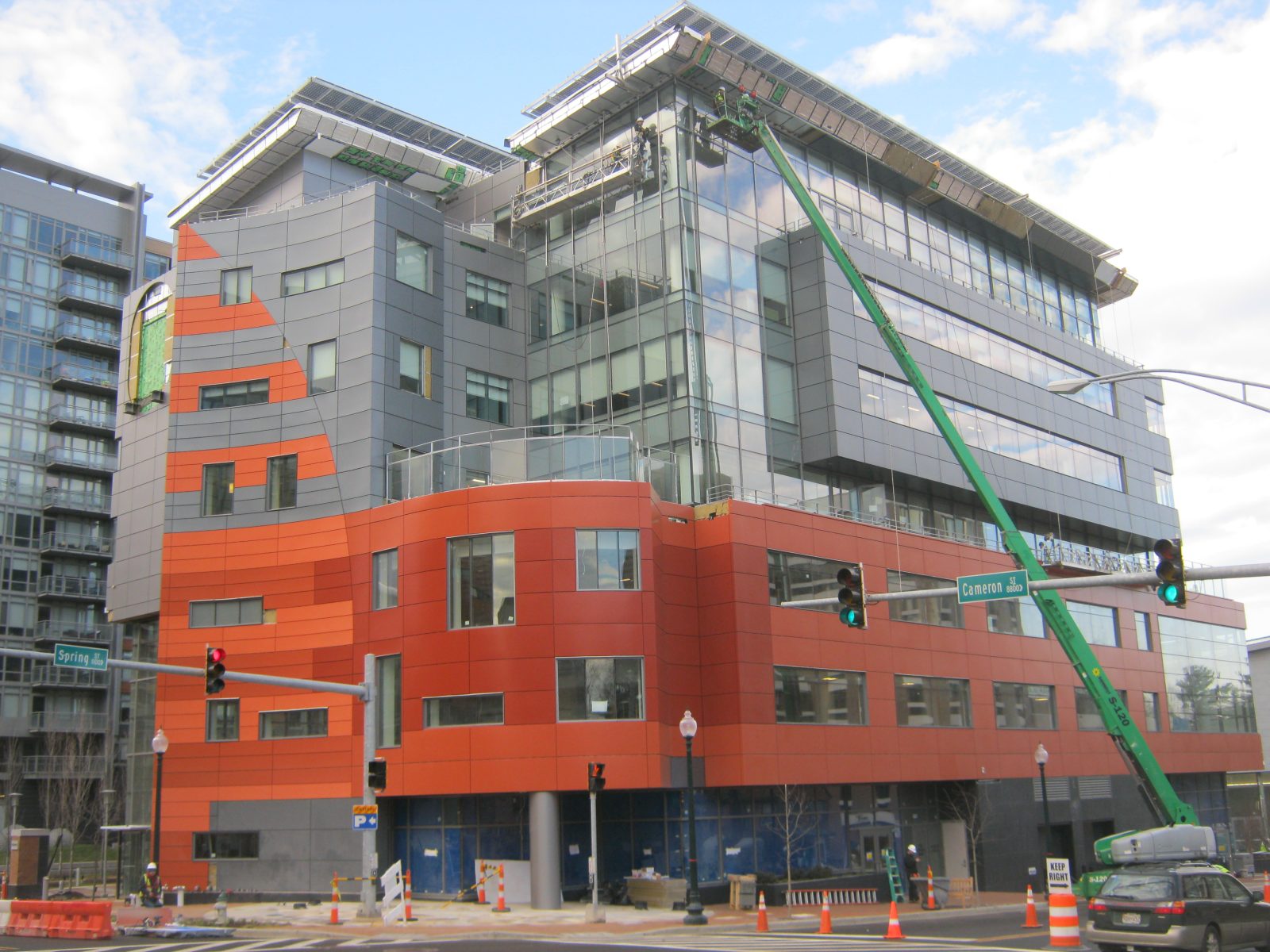 Looking to accommodate their growing business, United Therapeutics constructed a new building to expand their Spring Street headquarters. The seven-story office building, with a three-story atrium, is clad in metal panels to blend with the surrounding United Therapeutics structures. The project includes two stories below-grade, a landscaped plaza connecting to a new atrium structure, and a pedestrian bridge crossing Cameron Street and connecting the addition to another United Therapeutics building. SGH consulted on the building enclosure design and construction for the project.