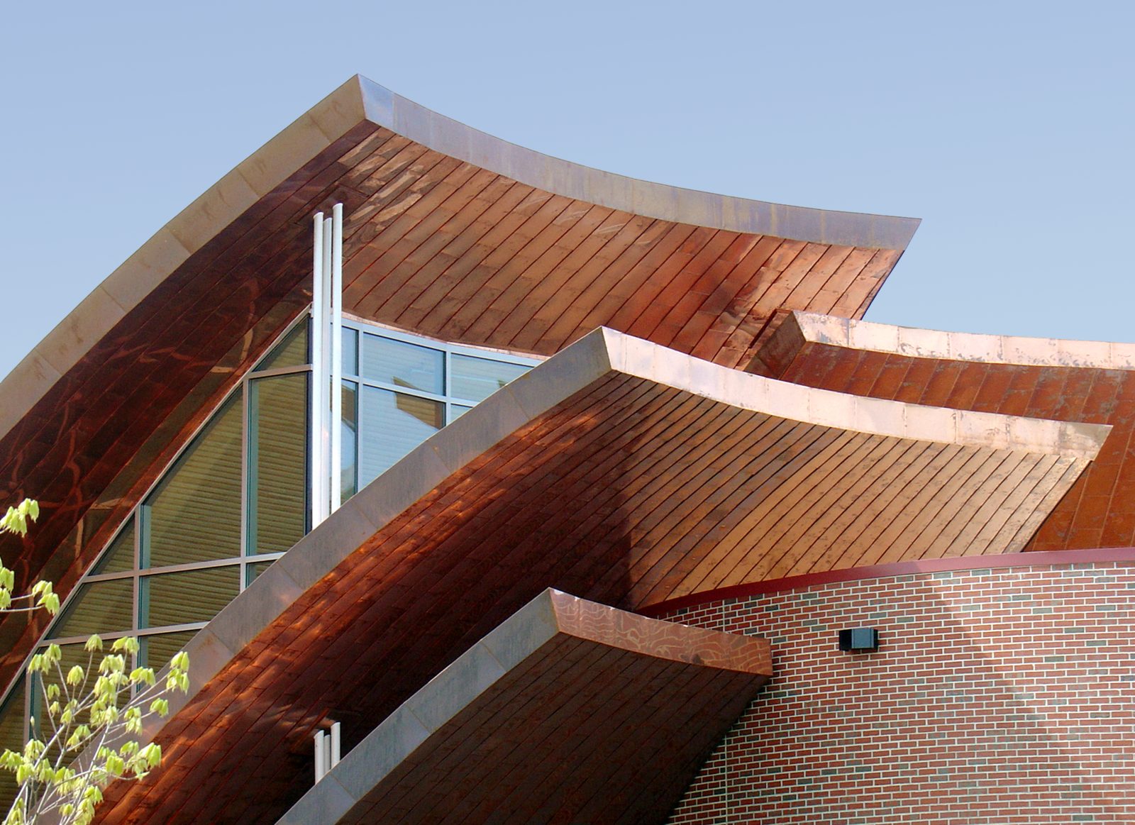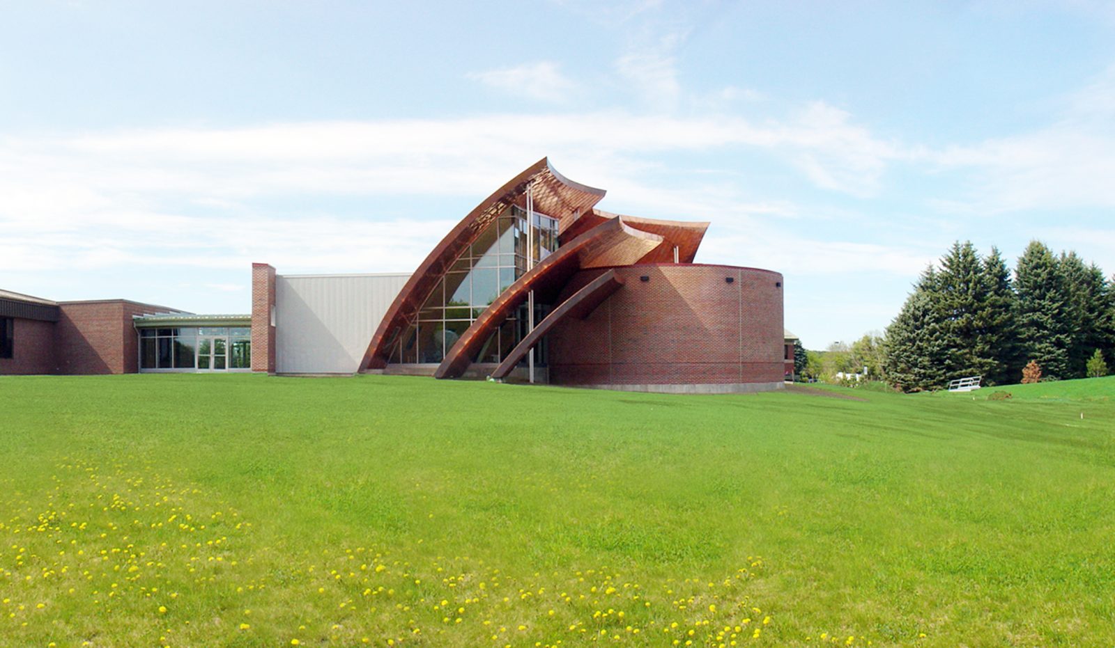 The Michael Klahr Center, named in honor of a Maine resident who survived the Holocaust, houses the Holocaust and Human Rights Center (HHRC) at University of Maine at Augusta (UMA). HHRC sponsored an international architectural design competition and selected Shepley Bulfinch’s entry from 123 submissions for the new center. Shepley Bulfinch’s design featured a cylindrical, brick-clad theater as a centerpiece for the building. In the theater, HHRC presents stories of Holocaust survivors from Maine told in their own words. Around this focal point, semispherical petal structures spring forth from the ground. By suggesting the blooming petals of a flower, the design reminds visitors of the rebirth of freedom and human rights after the horrors of the Holocaust and World War II. SGH designed the structure for the building.