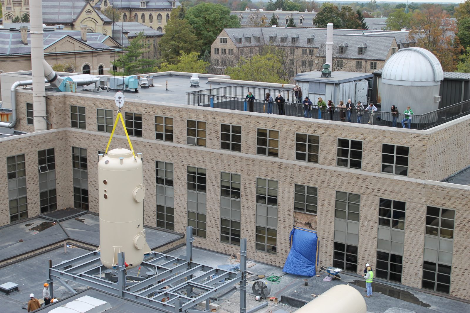 Working for the University of Notre Dame, SGH completed a feasibility study (Phase 1) to determine how to support and enclose a 5 MV vertical ion accelerator over an existing physics laboratory. The accelerator, weighing about 24,000 lbs, generates heavy ion beams used for physics research. Following the study, SGH provided structural design and construction administration services for the construction of the ion accelerator support structure and enclosure structure (Phase 2) at the university’s Nuclear Science Laboratory.