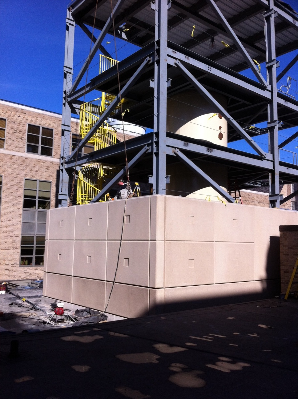 SGH determined it would be feasible to support the 8 ft dia., 23 ft tall accelerator over the existing laboratory and enclose it within a new addition on top of the existing reinforced concrete building. We prepared a report summarizing our findings from Phase 1 and developed schematic structural framing schemes.