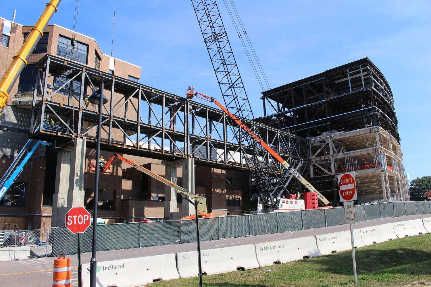 SGH designed the steel-framed structure, including braced frames around elevator cores at the north and south ends and moment frames along the curved east and west facades. The ground story is partially open to accommodate an existing ambulance and patient entrance to the emergency department. SGH designed the structure with long-span floors to bridge 56 ft over the drive lanes. Additional highlights of our work include the following: