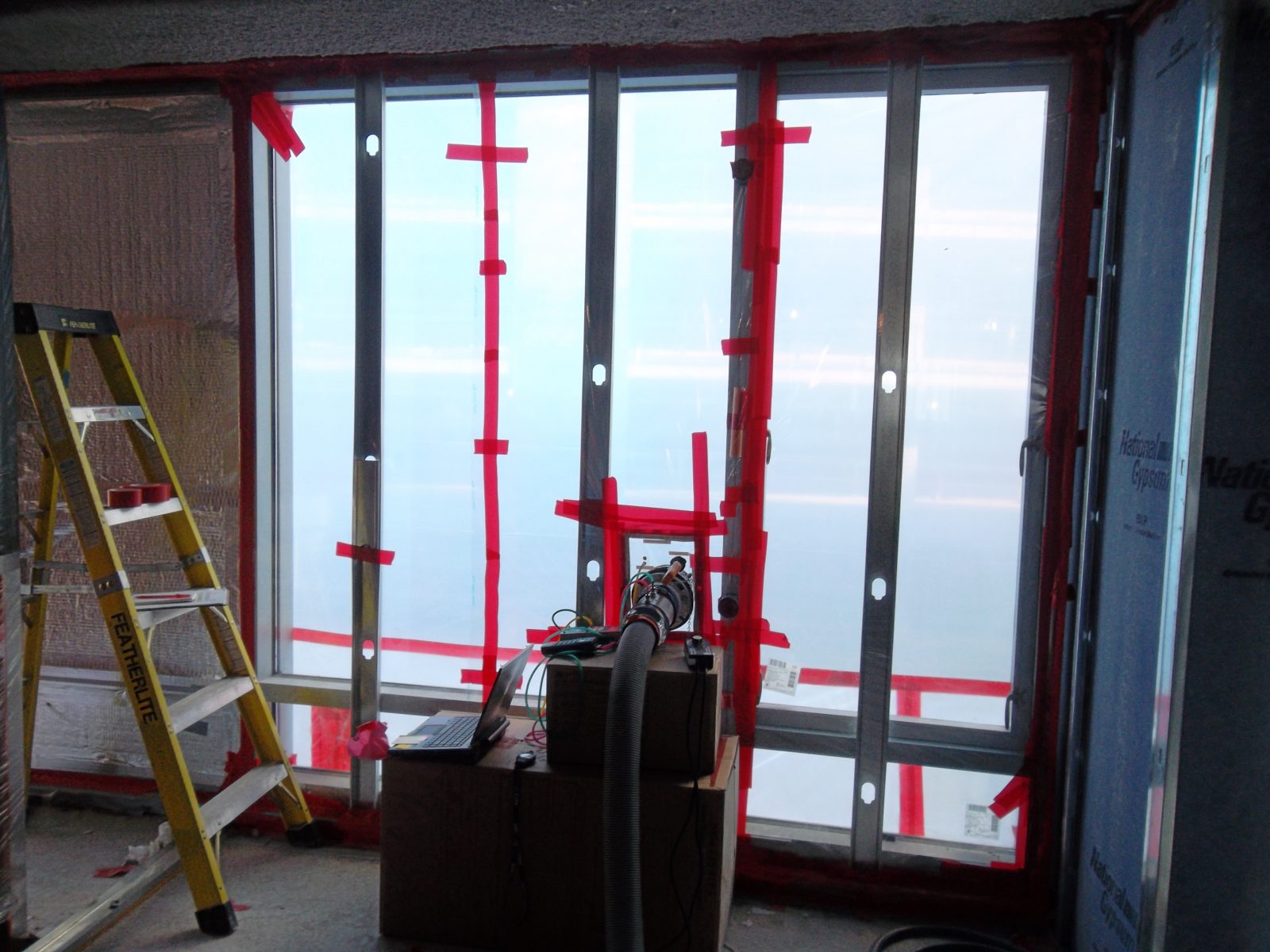 - Conducting field adhesion testing on air barrier systems, and water/air infiltration testing of the curtain walls and punched windows