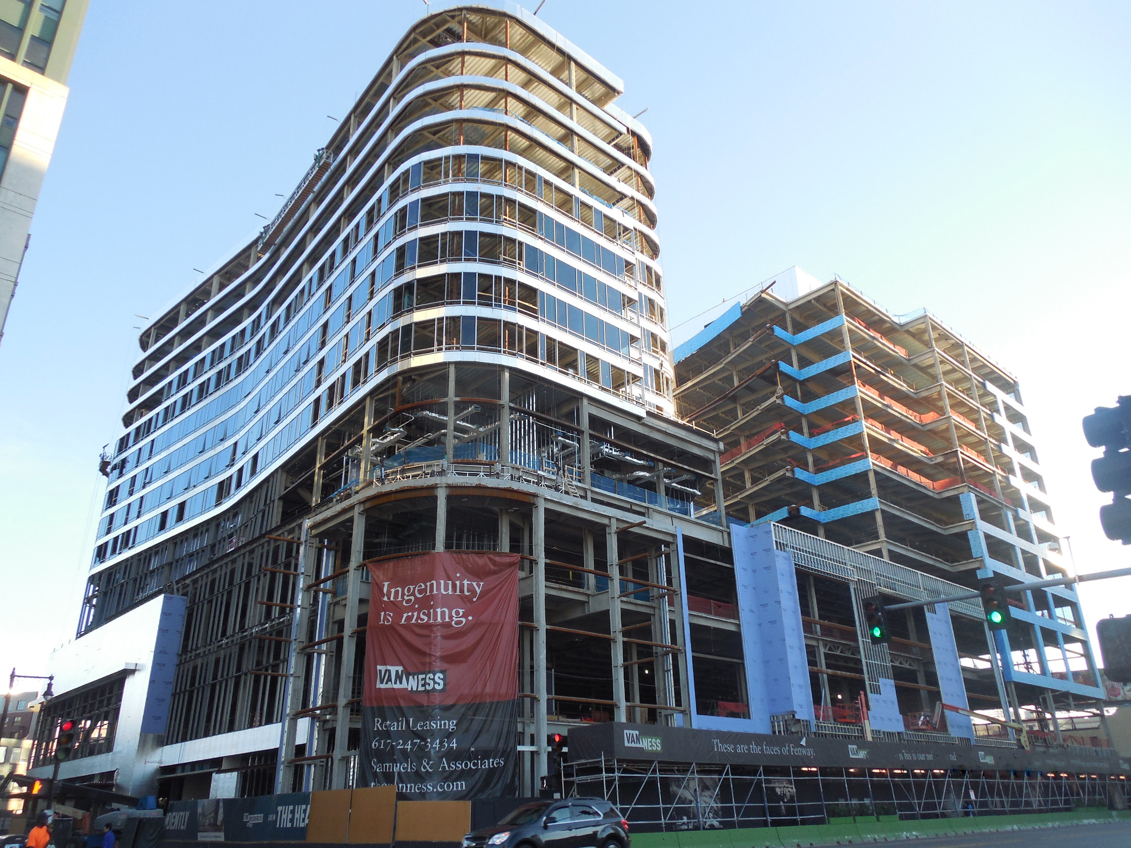The Van Ness offers offices, apartments, retail space, and below-grade parking in Boston’s Fenway neighborhood. The mixed-use development at 1325 Boylston Street comprises two towers bridged by a landscaped plaza over ground-level retail spaces. SGH consulted on the building enclosure, including property line below-grade waterproofing, curtain wall, cladding, unitized wall panels, roofing, and the landscaped plaza.
