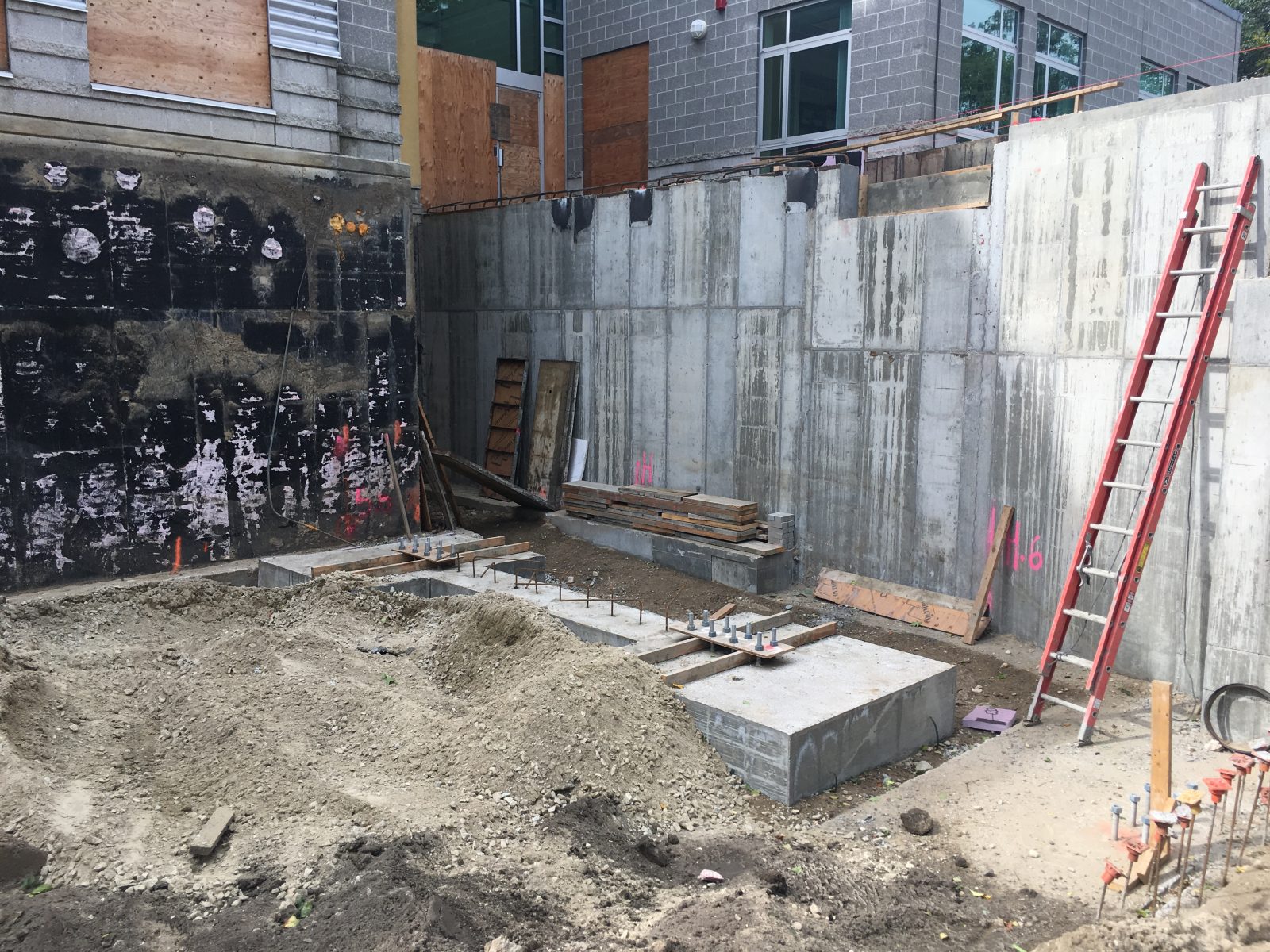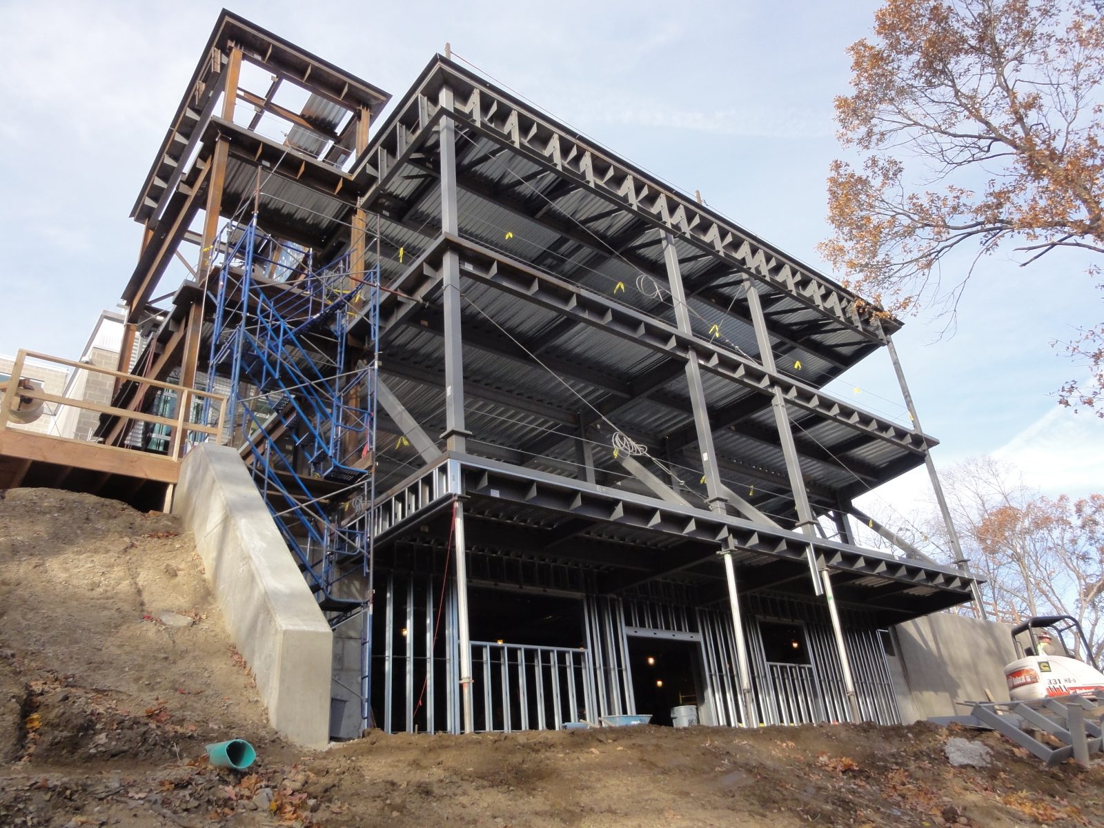 - Stepped foundation to accommodate the very steep slope and a walkout basement level on the east side