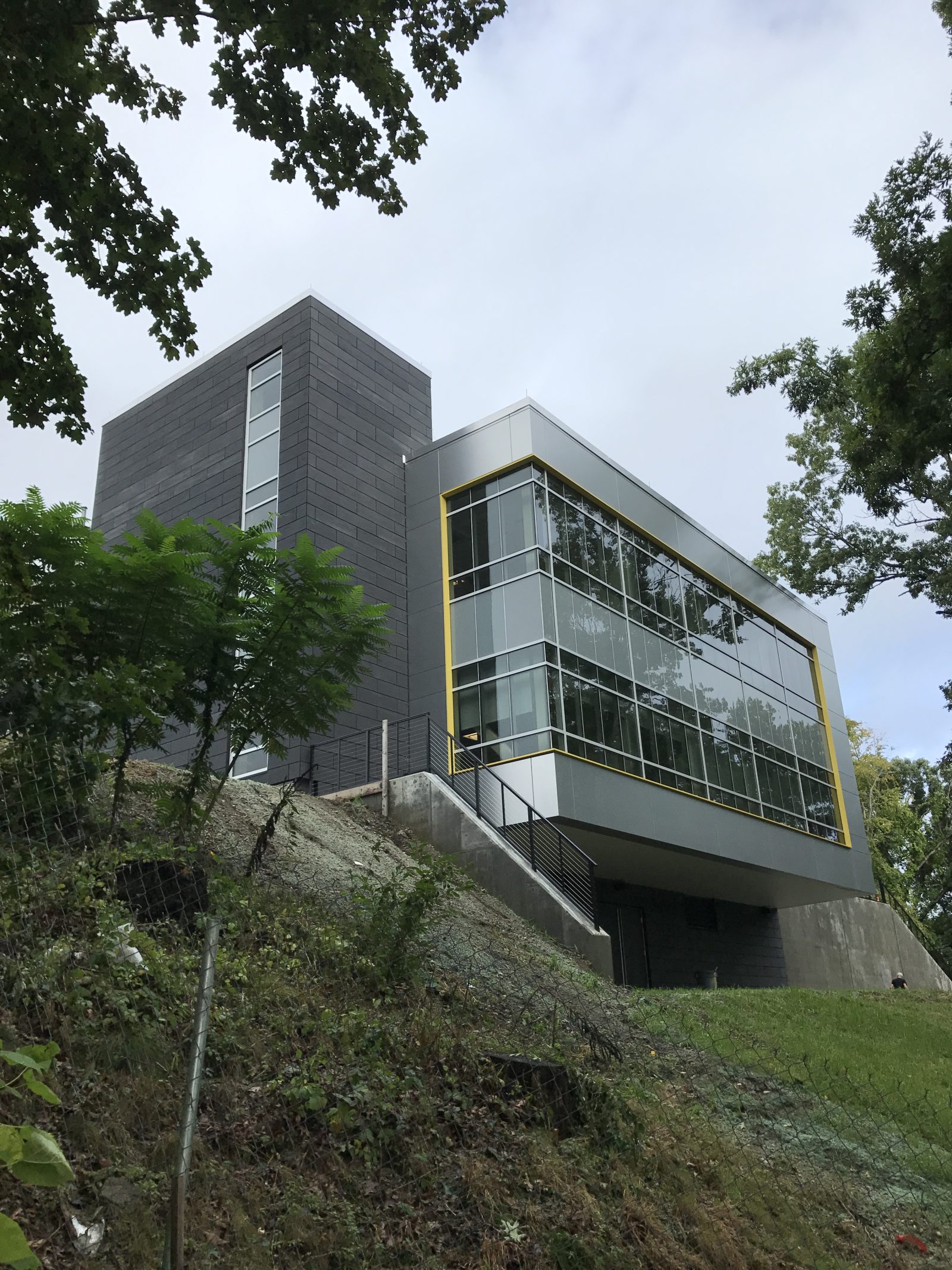 - Upper levels cantilevering over the basement level to maximize the square footage of the addition, while keeping the building primarily supported at the top of the steep slope to minimize costs