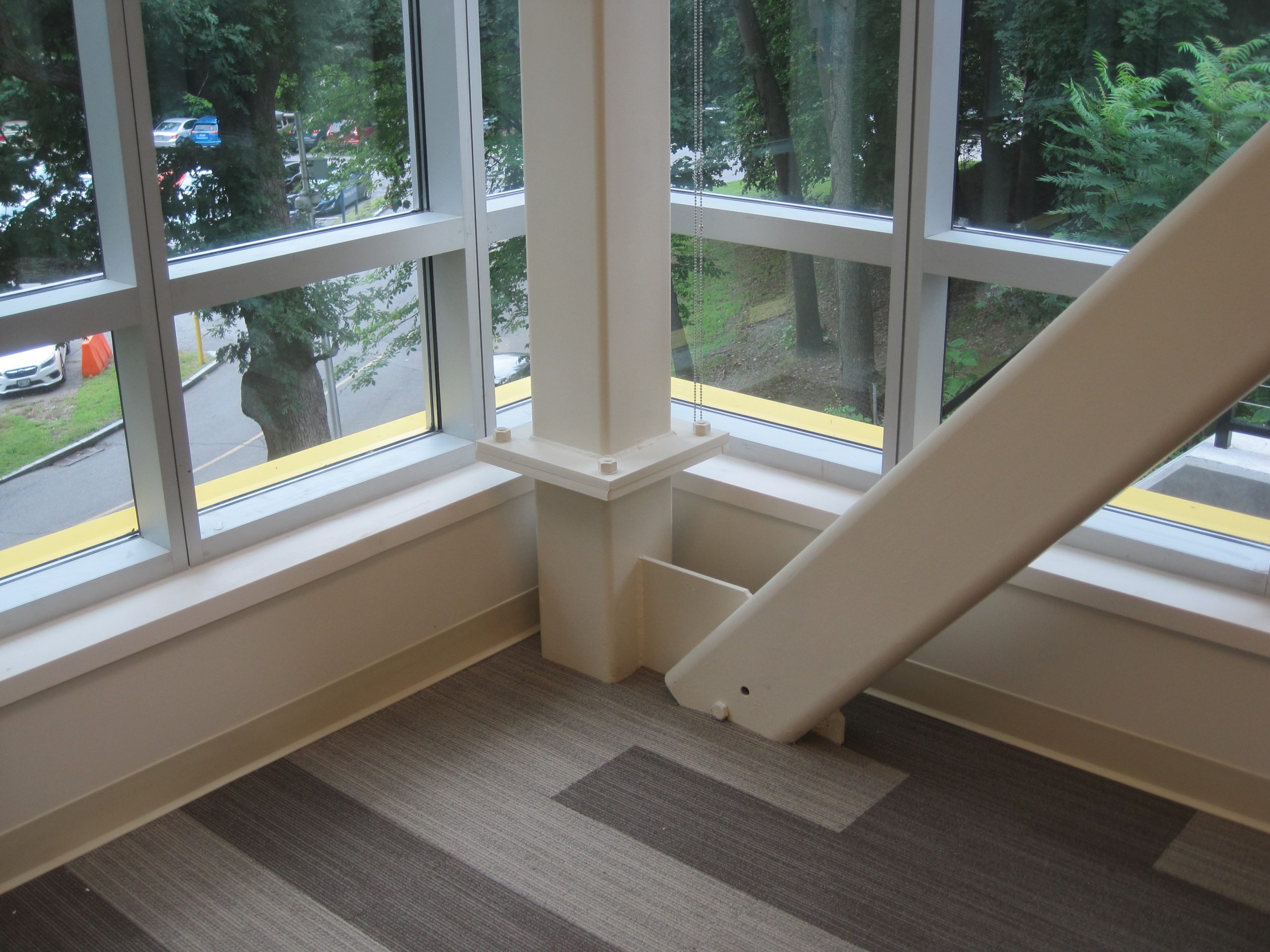 - Braced frames that and are exposed in certain areas of the new space and support the large cantilevering floor on the upper levels