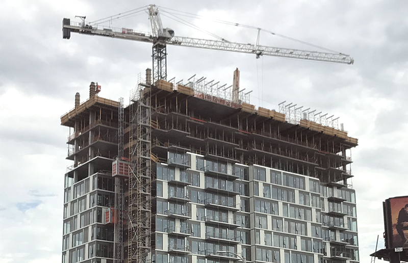 Located on the corner of Wilshire and Crescent Heights Boulevards, the eighteen-story tower brings more than 150 apartments to the Beverly Grove neighborhood. The complex offers residents two amenity decks, a rooftop pool, ground-level retail, and below-grade parking. SGH consulted on the building enclosure, featuring a facade with alternating window walls and opaque panels.