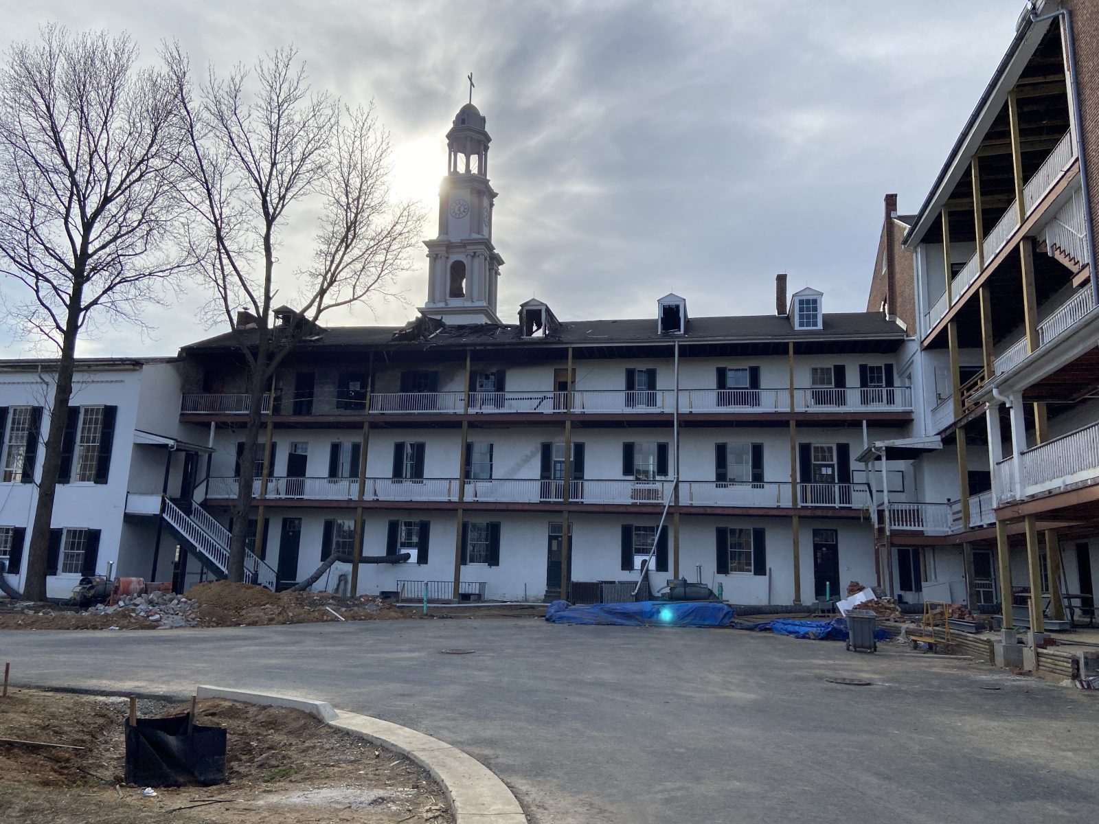 On 1 April 2023, a fire broke out on the roof of the former Visitation Academy building. At the time of the fire, the 1840s building was being redeveloped as a mixed-use site with a sixty-seven-room boutique hotel and two condominium buildings. SGH, who was serving as the structural engineer for the hotel renovation project, investigated the condition of the structure following the fire and designed repairs.
