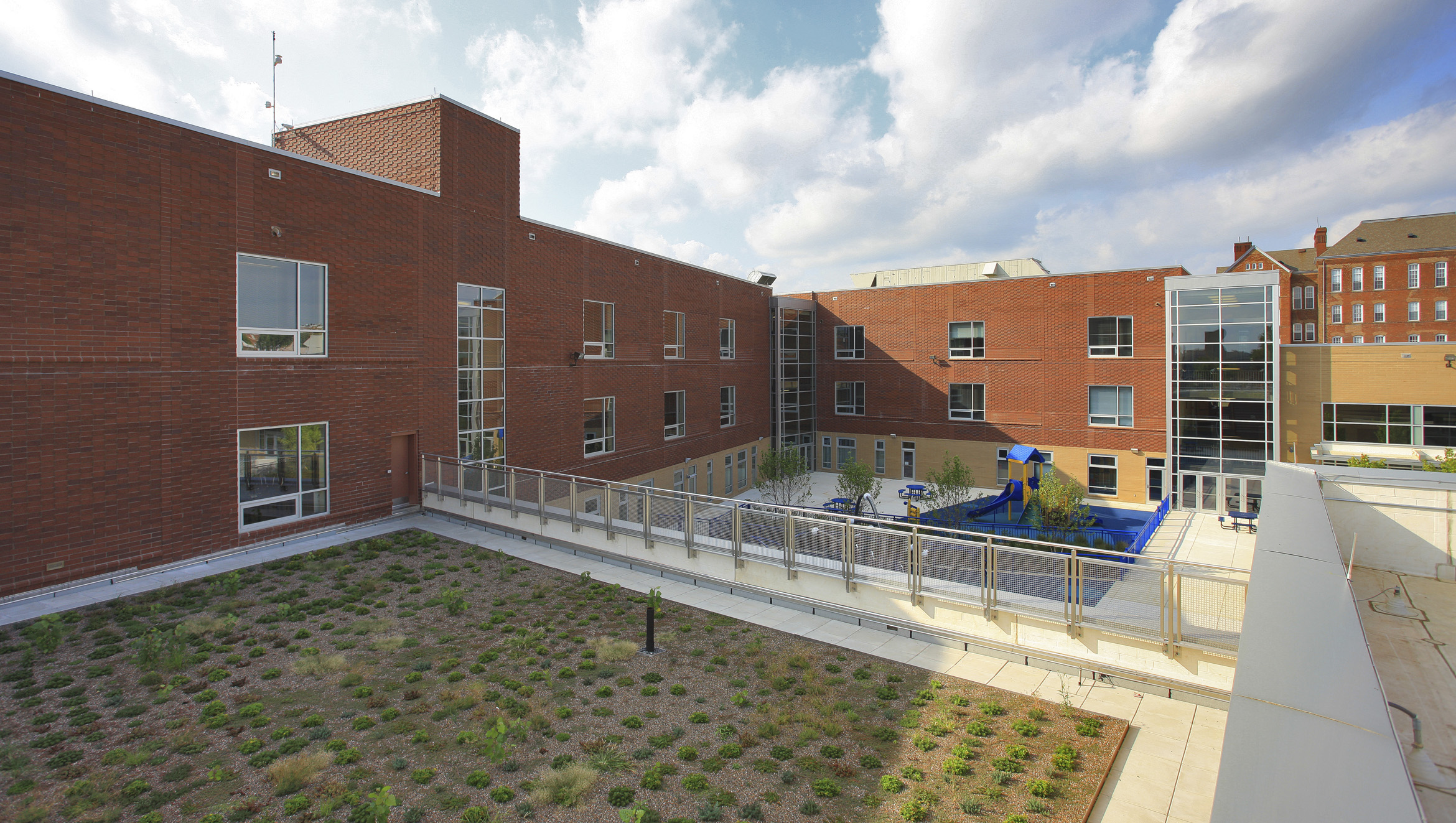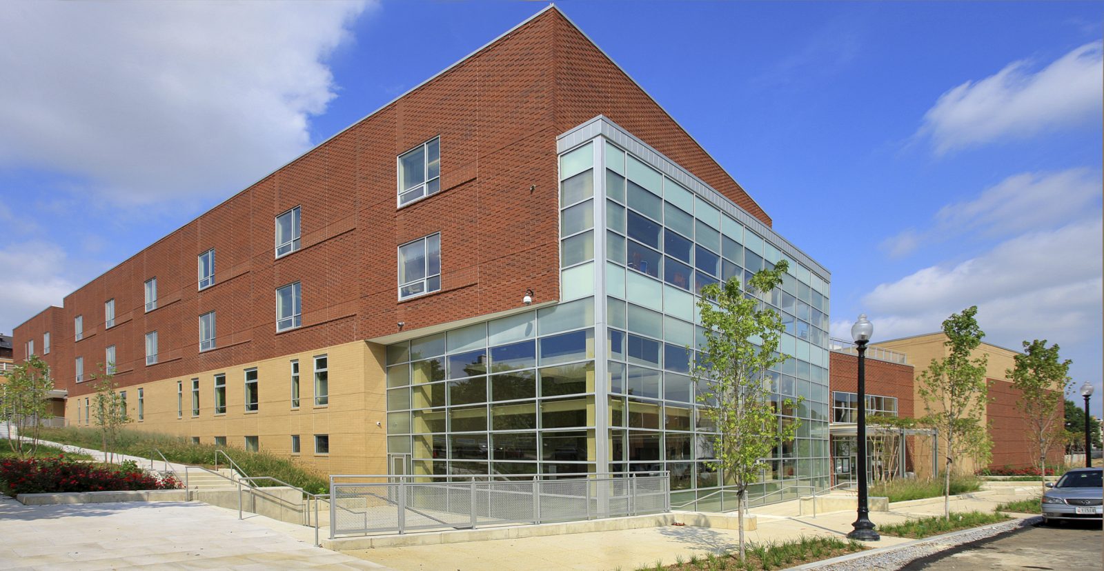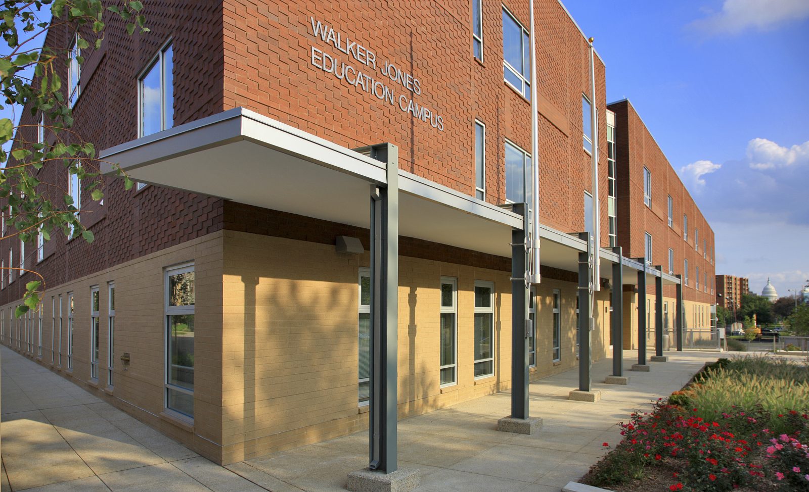 Developed to promote revitalization of the surrounding Washington, DC neighborhood, the Walker Jones Educational and Community Center project includes a K-8 school with an integrated public library and community recreation center. Hord Coplan Macht retained SGH for the structural design of the 135,000 sq ft building, which is LEED certified, achieved in part by a green roof above a portion of the recreation center and the classroom wings.