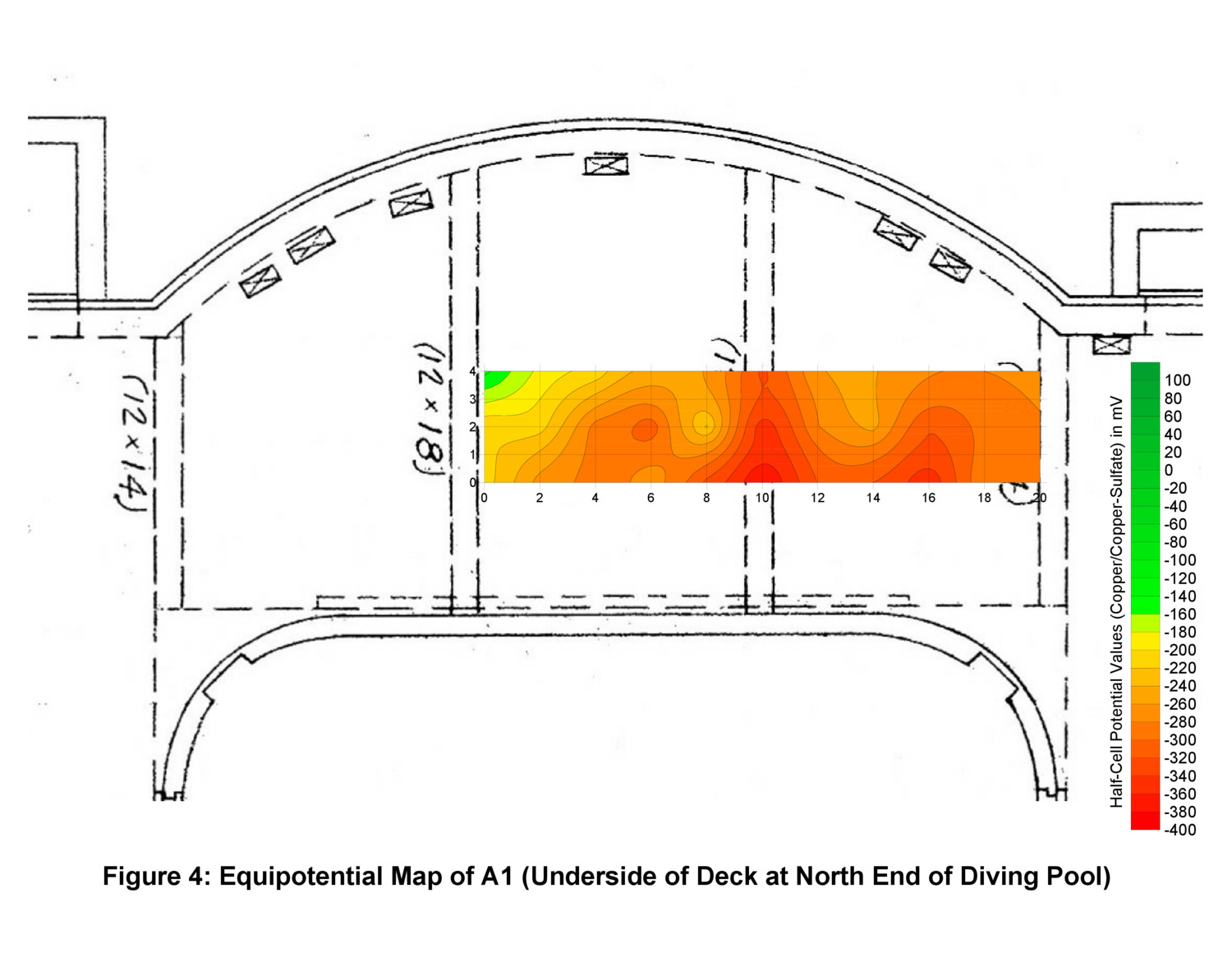 We determined the deterioration was due to long-term chloride contamination from the pool water and recommended repairs to the topside and underside of the pool deck. SGH developed conceptual repair options and estimated repair quantities to help the city in their budgeting for future renovations at the pool complex.