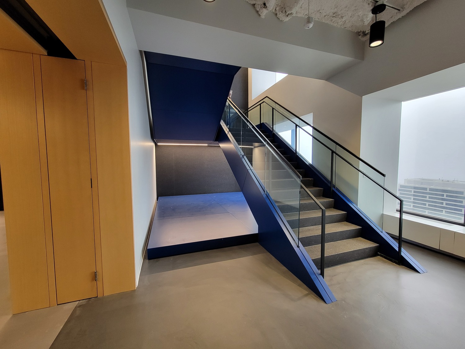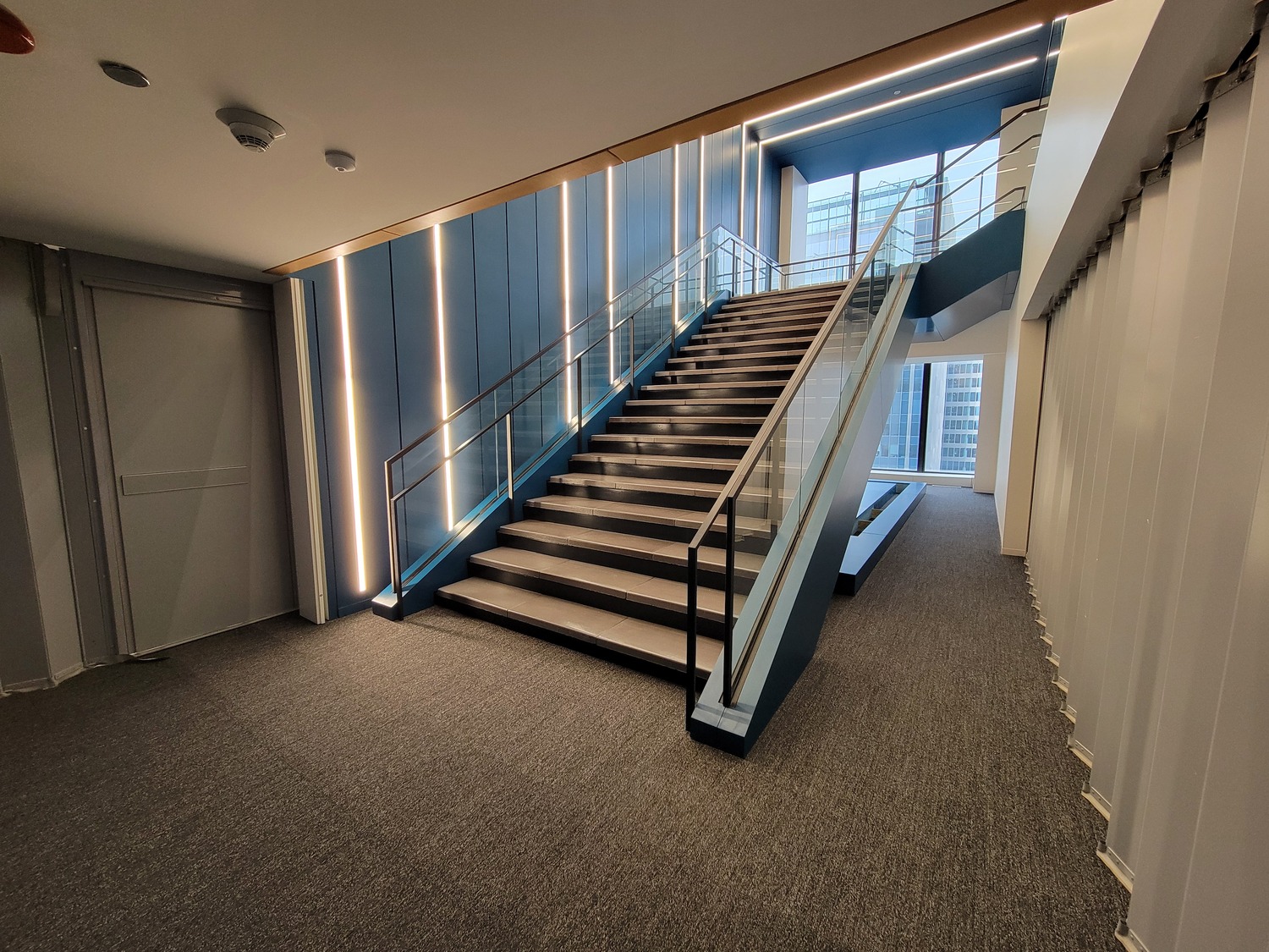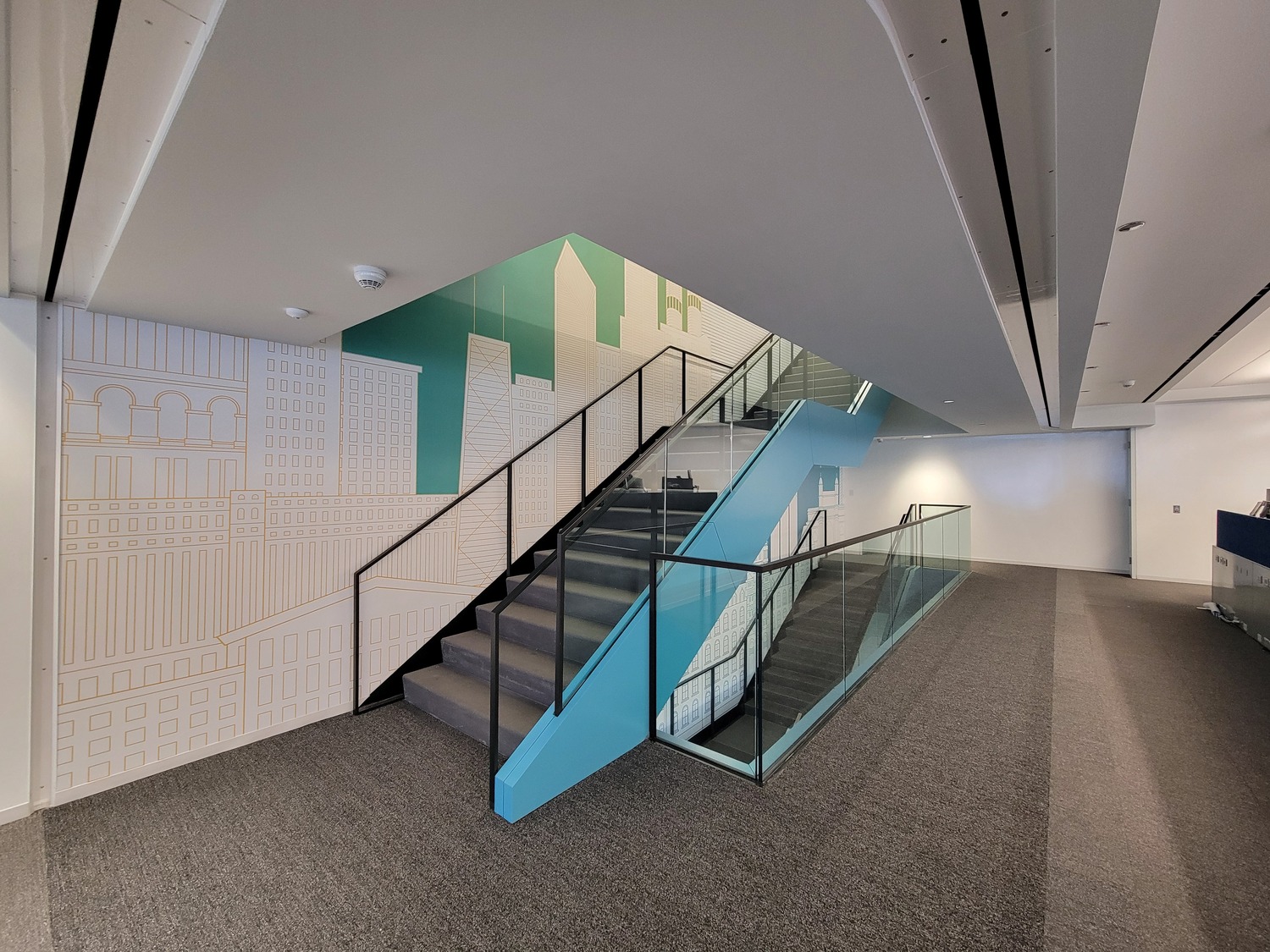 - Three new stairs. The project included constructing a new feature stair connecting Floors 41 and 42, a one-story egress stair connecting Floors 41 and 42 at an existing stair, and a two-story stair connecting floors 41 to 43. SGH developed the structural design for the new stairs; their connections to the base building structure; and supplemental framing to support the stair opening, new glass guards around the openings, and operable fire-rated partitions at egress stairs.