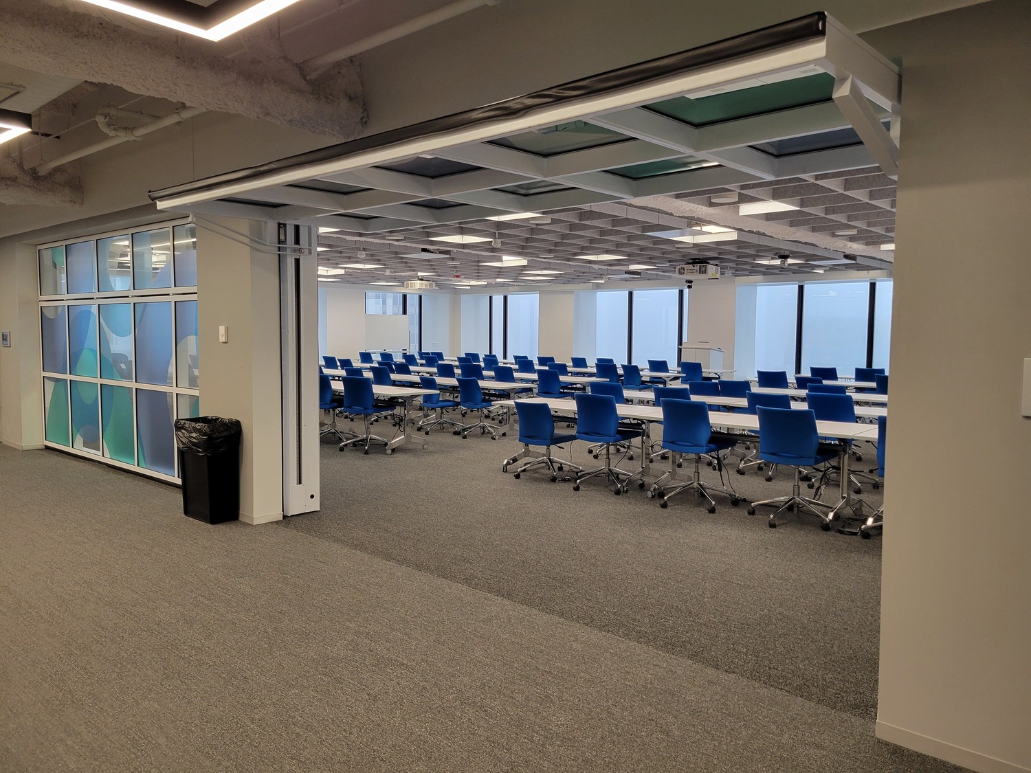 - Training room. We designed framing for operable partitions and evaluated the base building for additional loads.