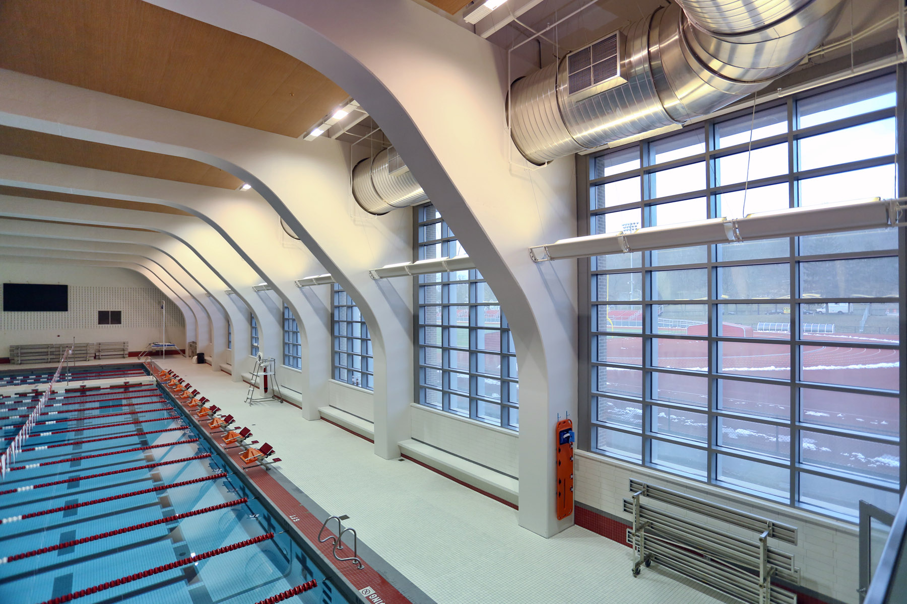 Recognizing sports and fitness are important to the campus community, Worcester Polytechnic Institute (WPI) wanted to update its current facilities by constructing a new sports and recreation center. The facility includes a precast concrete natatorium structure housing a 25 m competition swimming pool with spectator seating and a gymnasium above it. SGH was the precast specialty engineer for the natatorium.