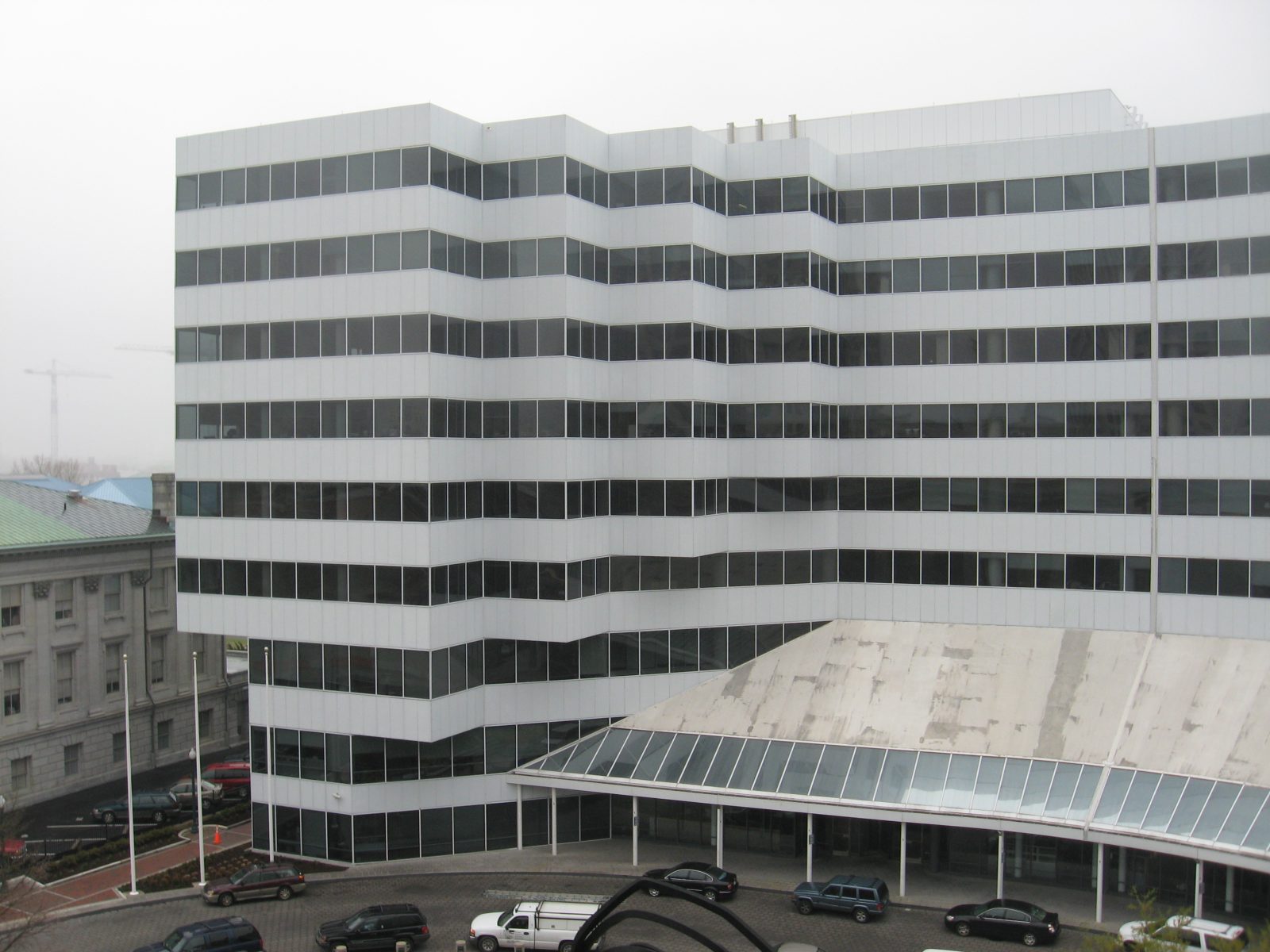 The World Trade Center in downtown Norfolk, Virginia is a nine-story office building overlooking the Elizabeth River. Constructed in the 1980s, the building is clad with insulated metal spandrel panels set in an aluminum-framed ribbon window curtain wall system. The property manager and occupants reported chronic leakage at the exterior walls and their intersection with the curved atrium roof. SGH investigated the causes of leakage and designed repairs to address the enclosure performance issues.