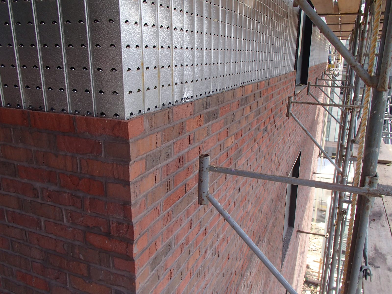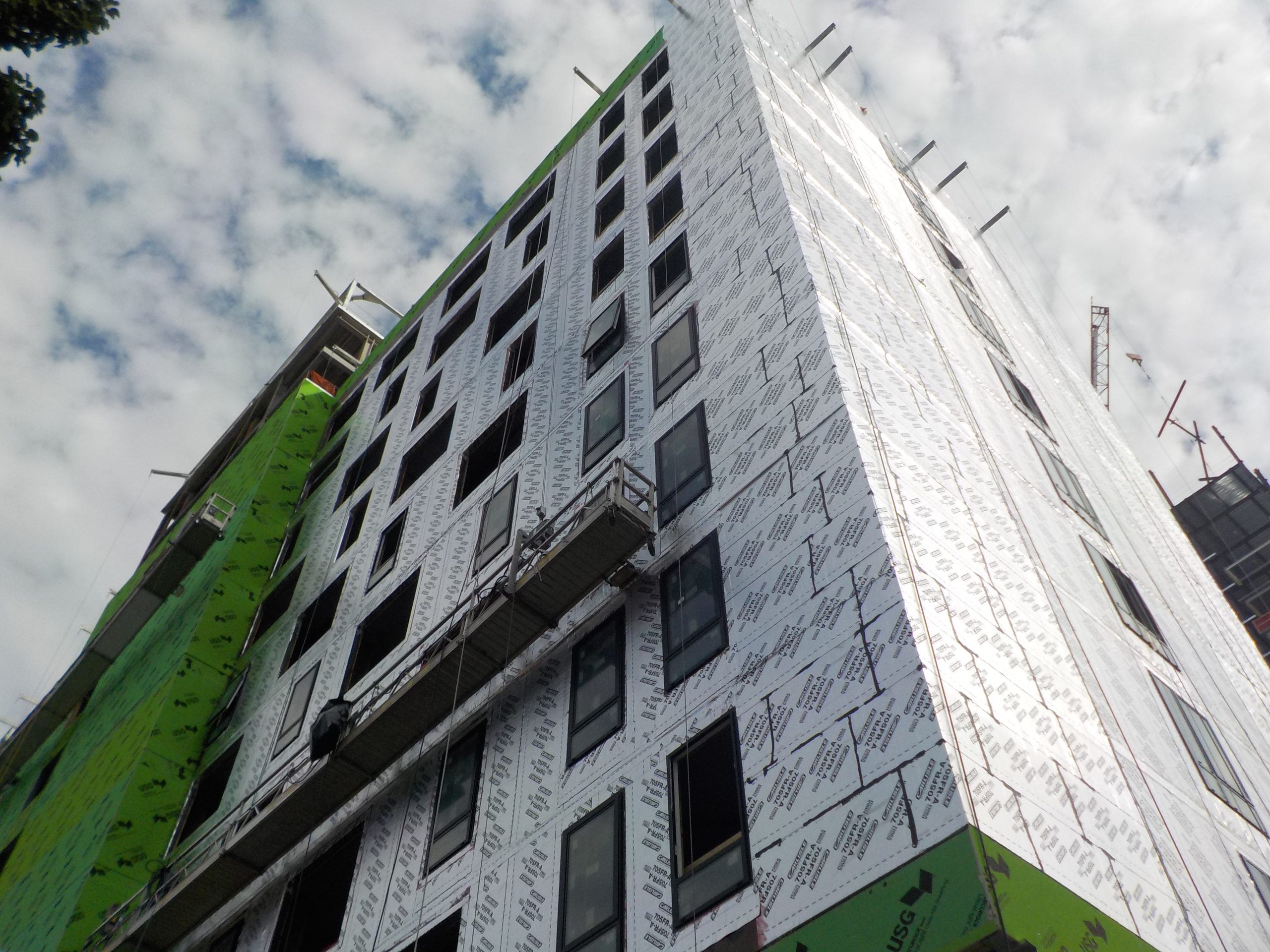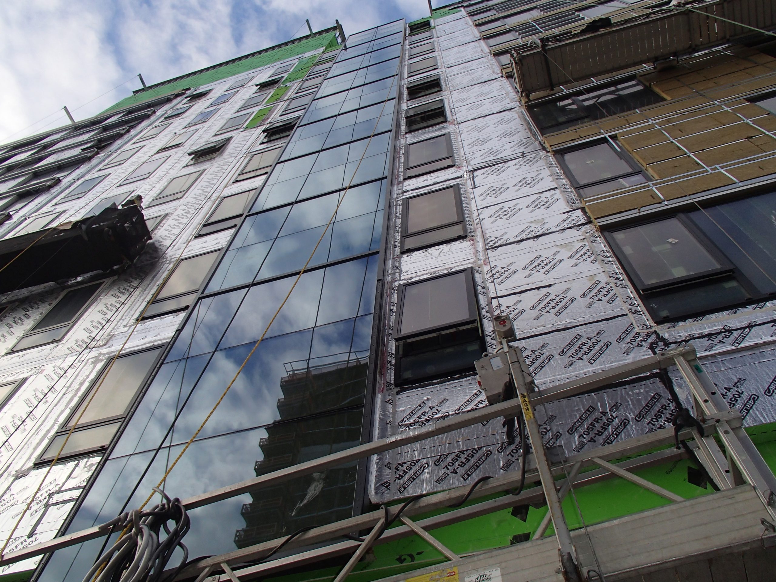 - Reviewing the building enclosure design and collaborating with the team to change the building’s facade system from a prefabricated mega panel enclosure to a site-constructed wall system comprising composite metal panel and thin brick cladding, sheathing, air/vapor barriers, and light-gage steel